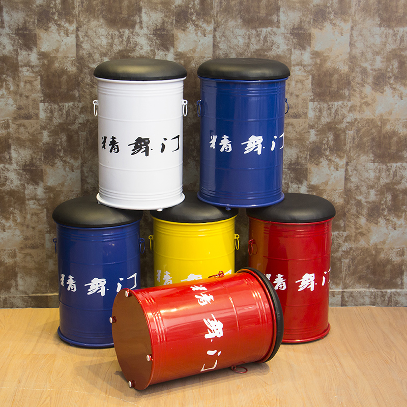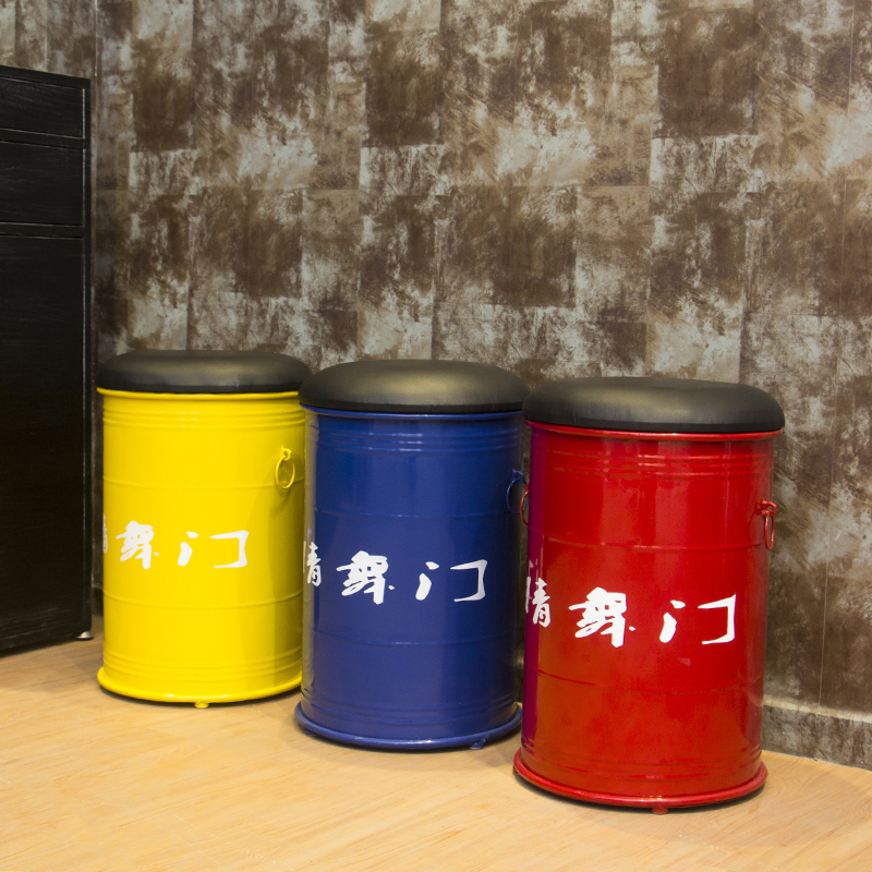 复古工业餐椅住宅家具酒吧收纳箱铁桶油桶凳铁艺凳子吧台凳吧椅子