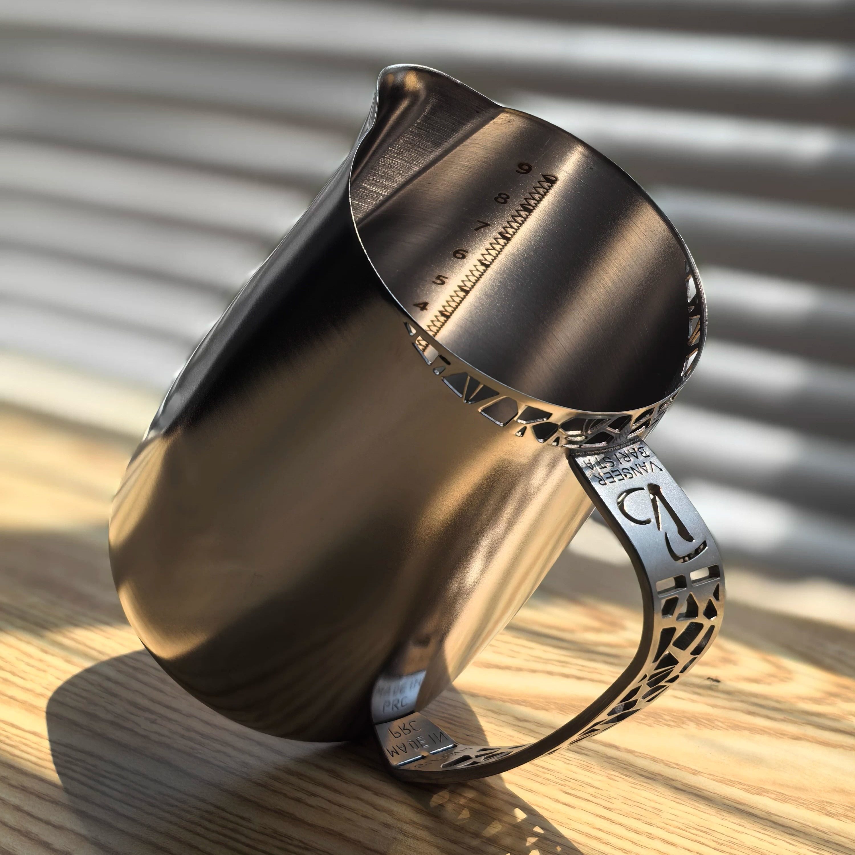 VanseerBarista压纹拉花缸304不锈钢镂空咖啡拉花杯打奶缸奶泡杯