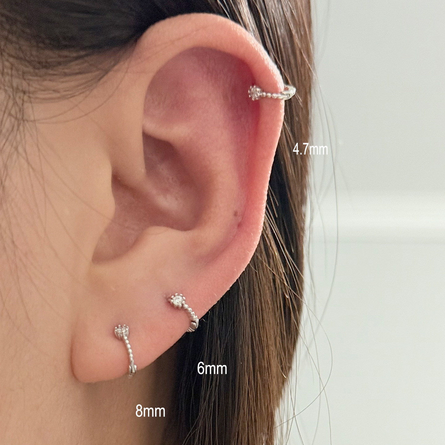 NUNU 睡觉免摘s925纯银麻花锆石耳骨环耳皮钉小耳朵耳圈细款耳饰
