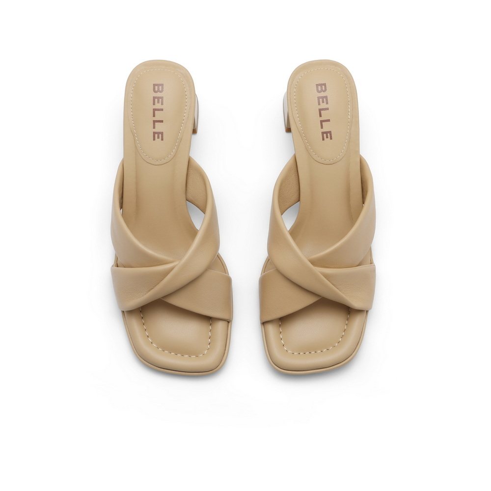 百丽女鞋子高跟凉鞋一字拖鞋女室内外穿一脚蹬粗跟拖鞋B1T1DBT4