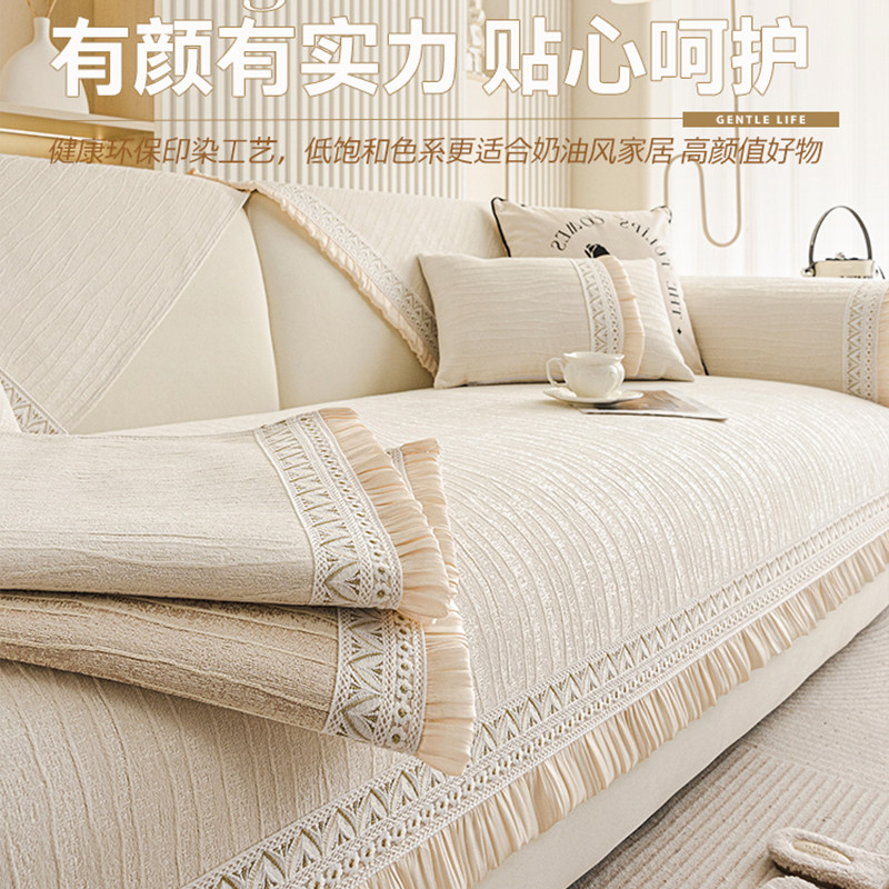 金柠檬居家布艺奶油风沙发垫布四季通用高级感坐垫新款防滑沙发套