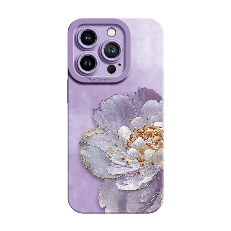苏绣牡丹适用17promax苹果手机壳iphone17新款16pro女15高级14妈妈plus老年人pro液态硅胶13超薄12的11外壳x