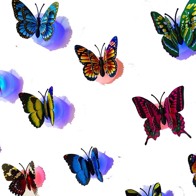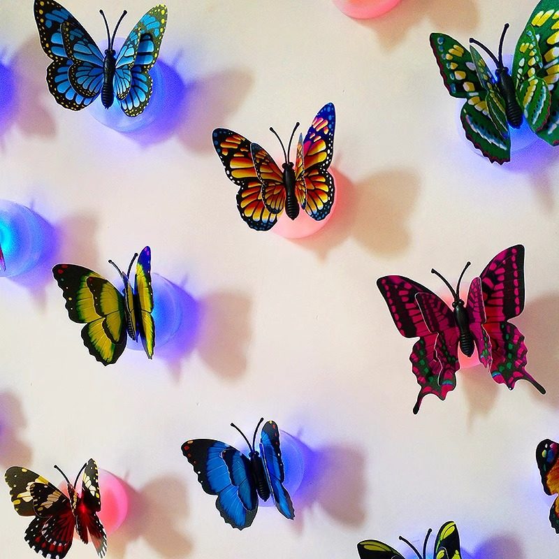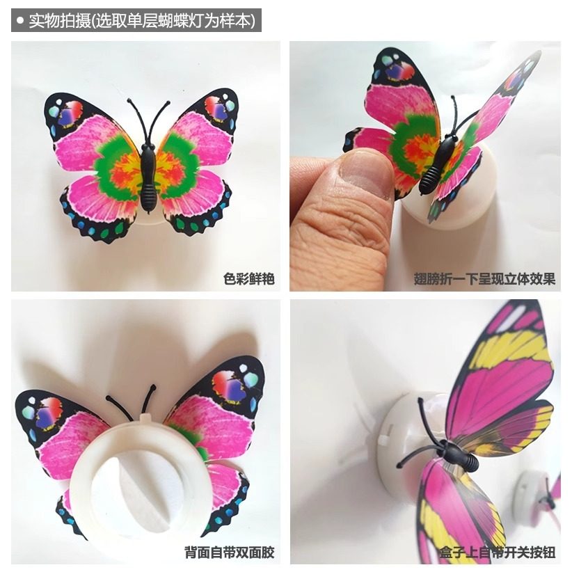 立体蝴蝶墙贴画夜光装饰发光床头灯圣诞场景布置创意房间简约自粘