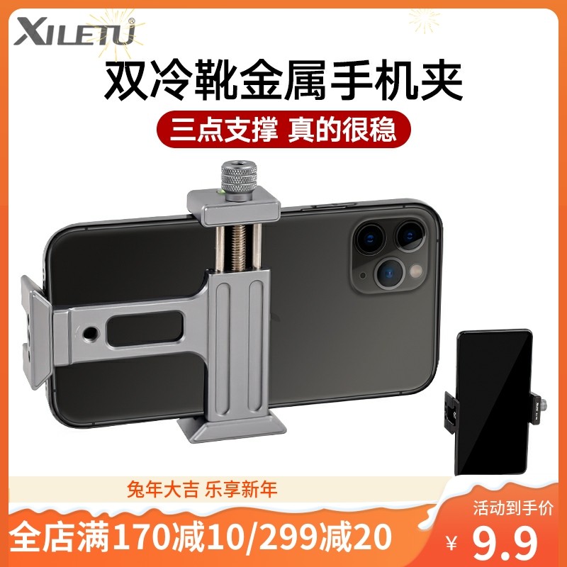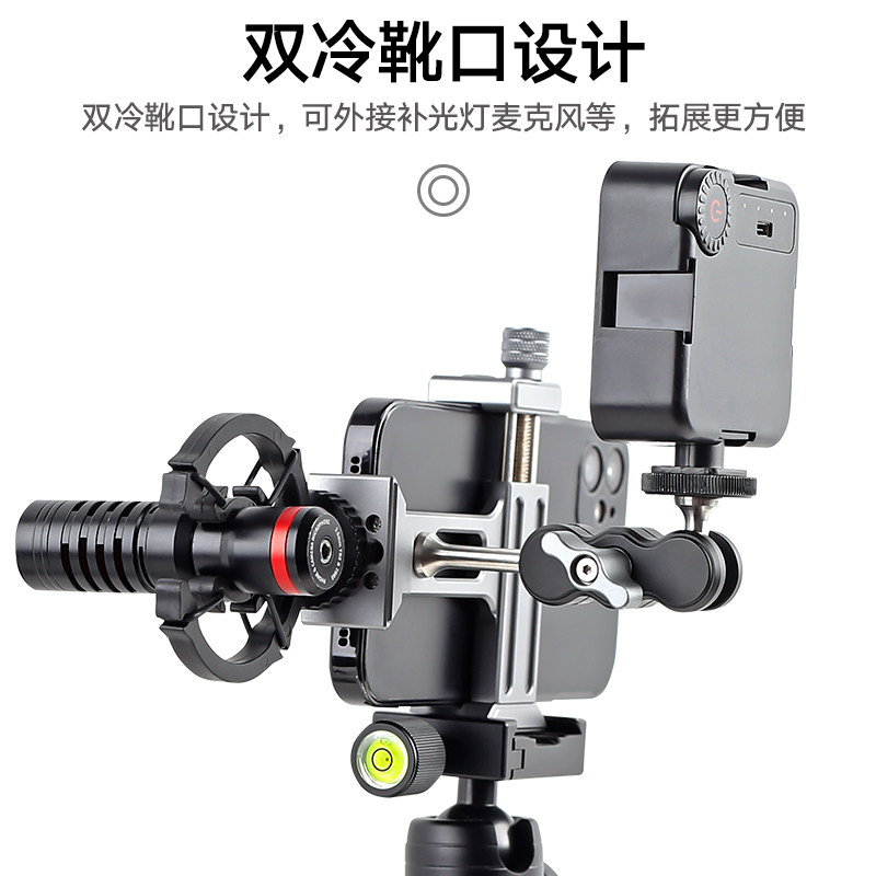 喜乐途金属手机夹三脚架云台阿卡夹座固定夹子双冷靴桌面支架配件