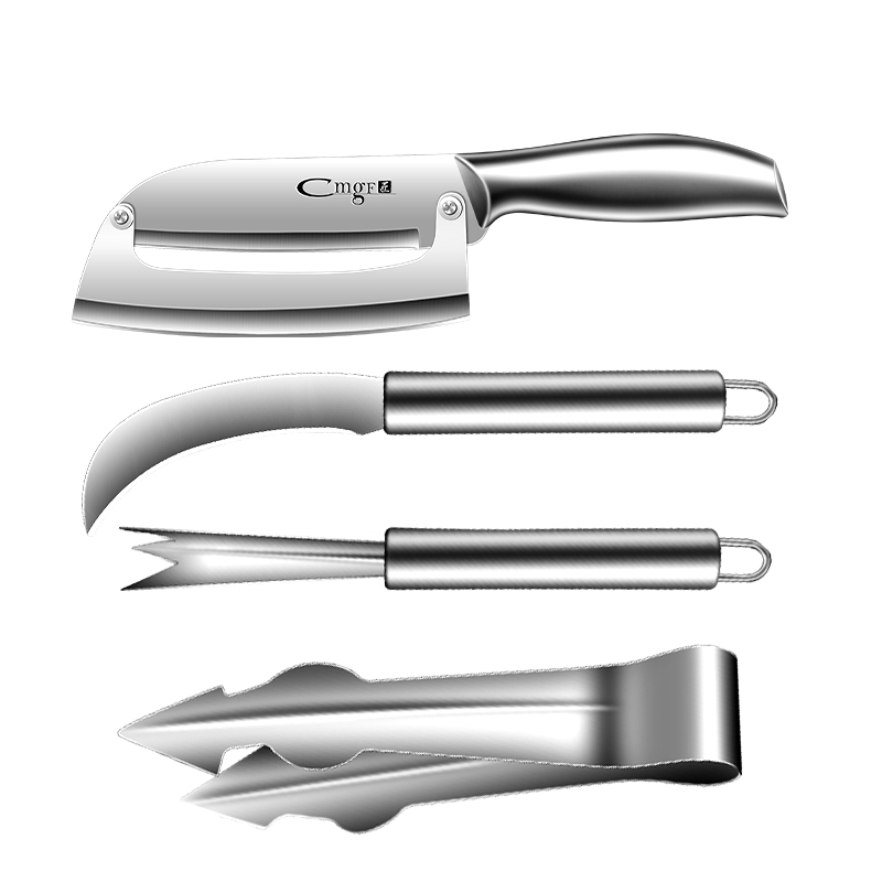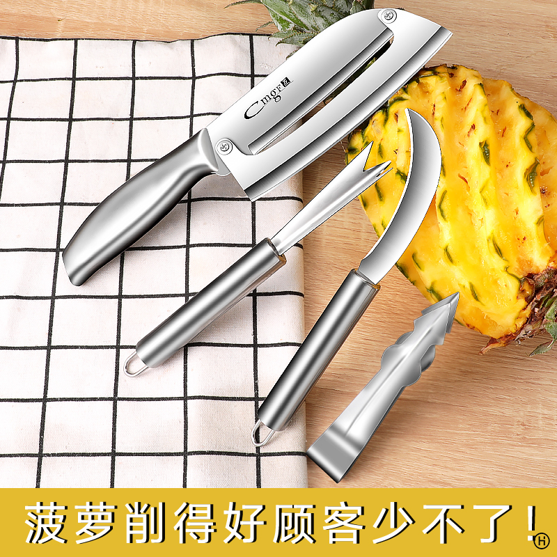 全钢菠萝刀四件套商用小弯刀不锈钢削皮神器甘蔗凤梨去眼专用工具