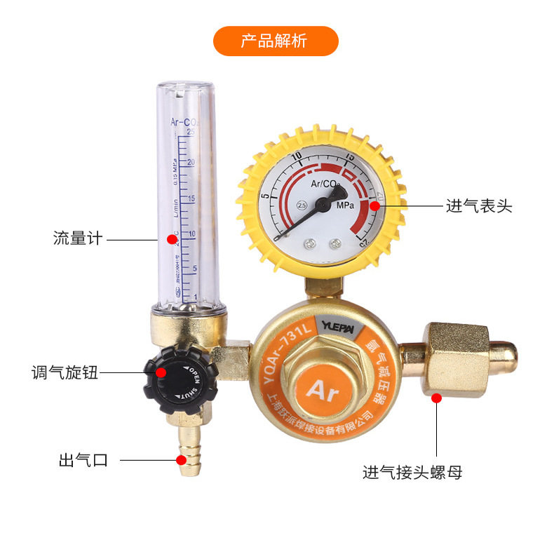 跃派双管氩气表减压器氩弧焊流量计二保焊二氧化碳压力表36V减压