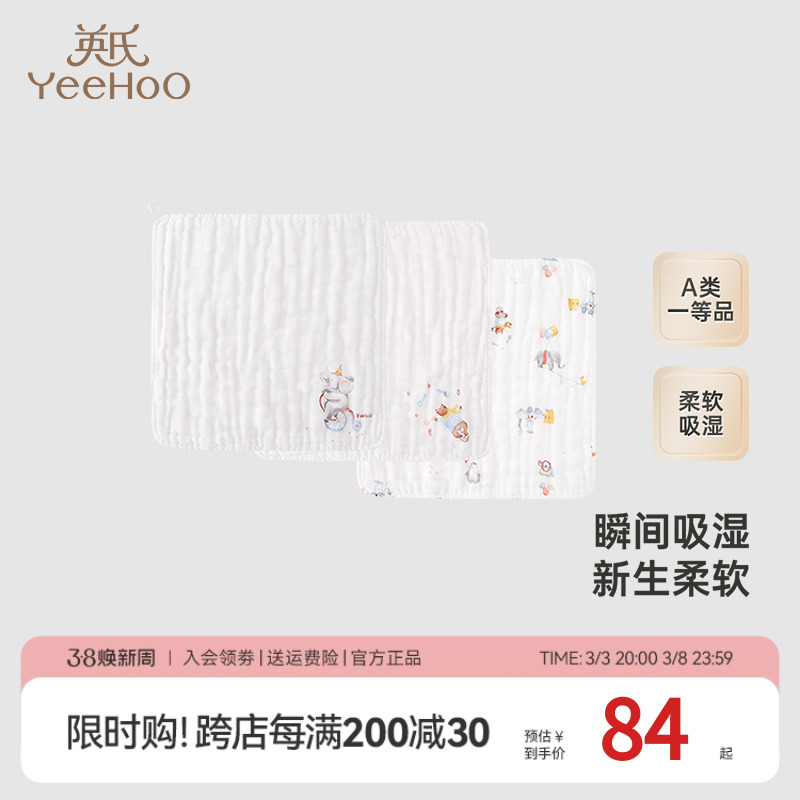 【商场同款】英氏儿童手帕纯棉抗菌3条装2025新款婴儿纱布小方巾