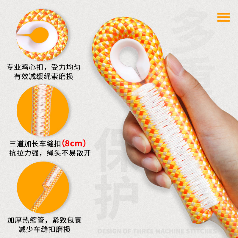 安索高空作业安全绳国标户外登山绳子耐磨攀岩速降救援绳索带挂钩