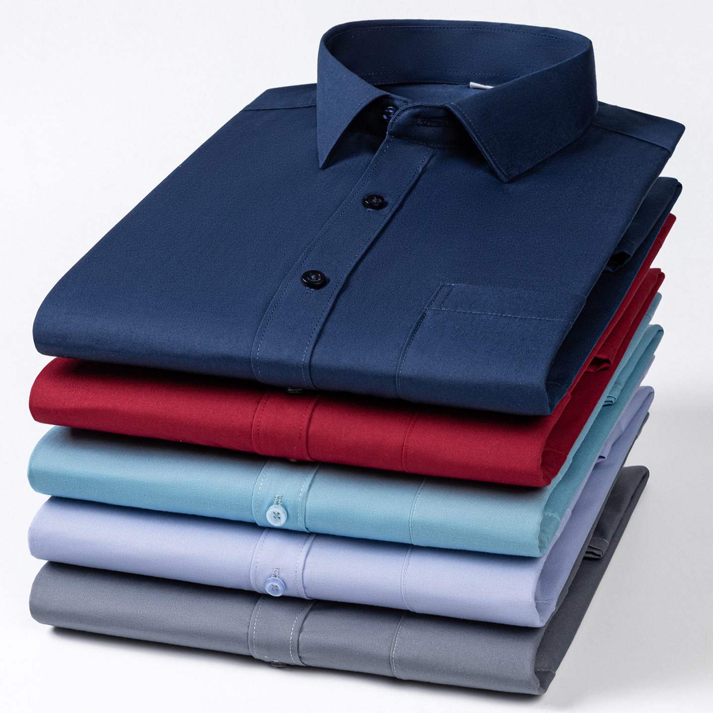 男式衬衫工装全棉直摆大码男装老式有口袋长袖中老年衬衣白下摆平