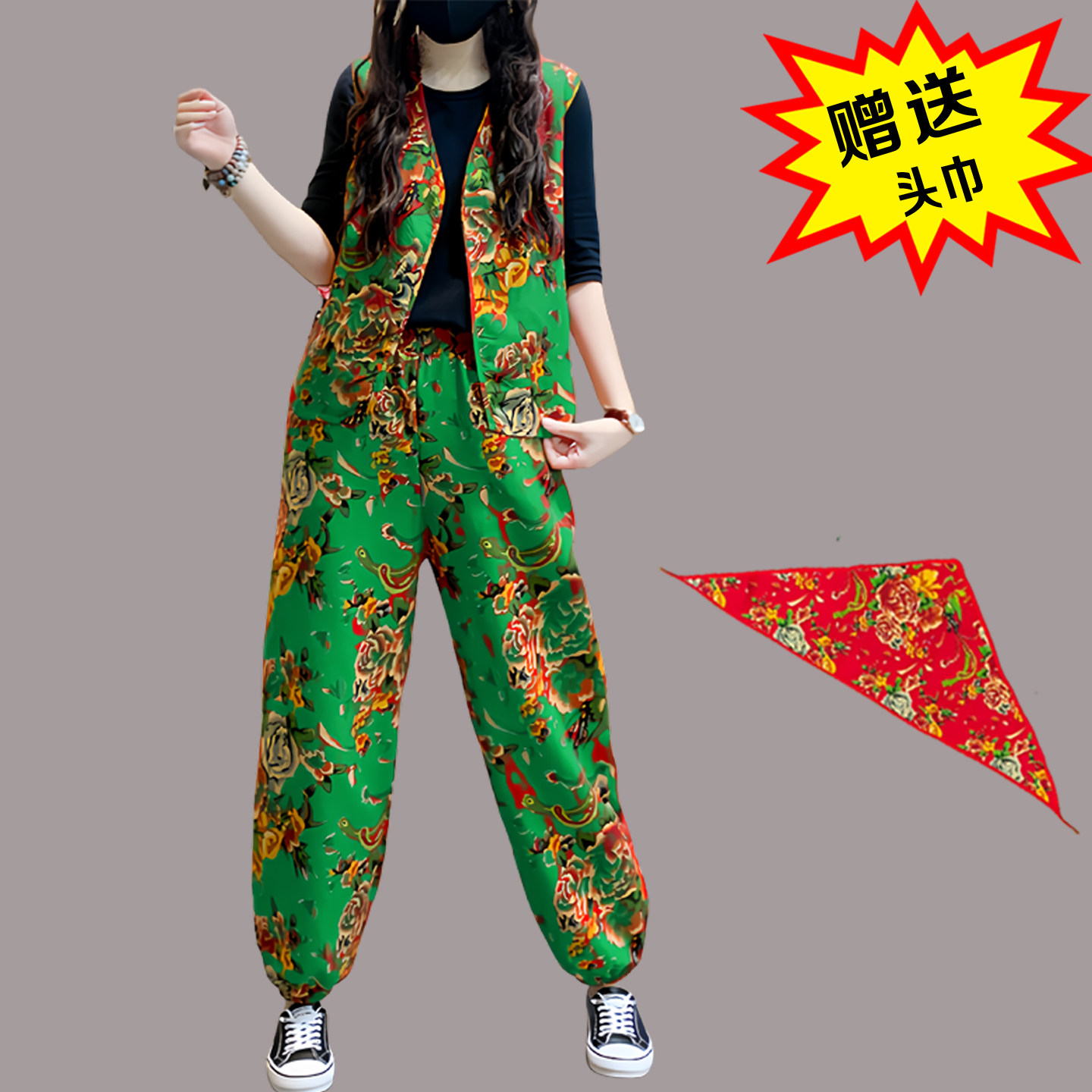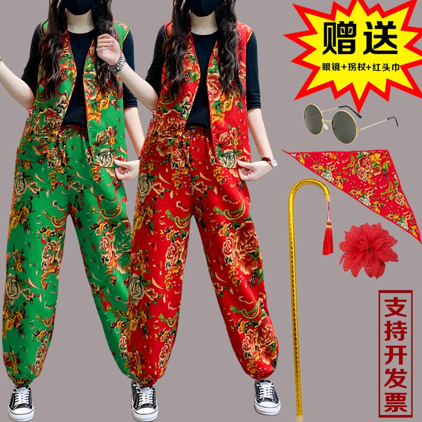 东北大花马甲套装广场舞蹈扭秧歌民族风二奶奶抖音国风打鼓演出服