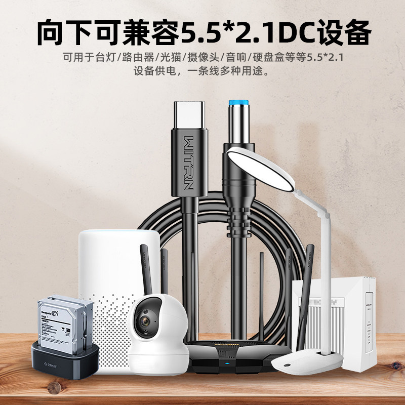 WITRN维简PD23.0转5525DC公头诱骗充电线笔记本PTYPE-C转DC5521适用PDC003