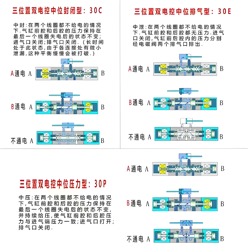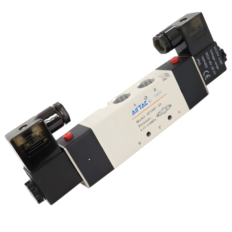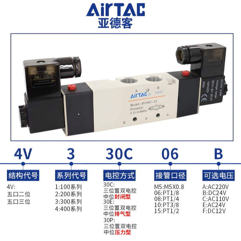 亚德客三位五通中泄型电磁阀 4V330E08-A/B/C/E/F-I-W DC24V正品