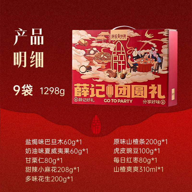 【k姐推荐】薛记炒货团圆锦礼1298g/9袋*3箱坚果礼过年过节直播