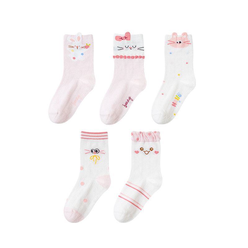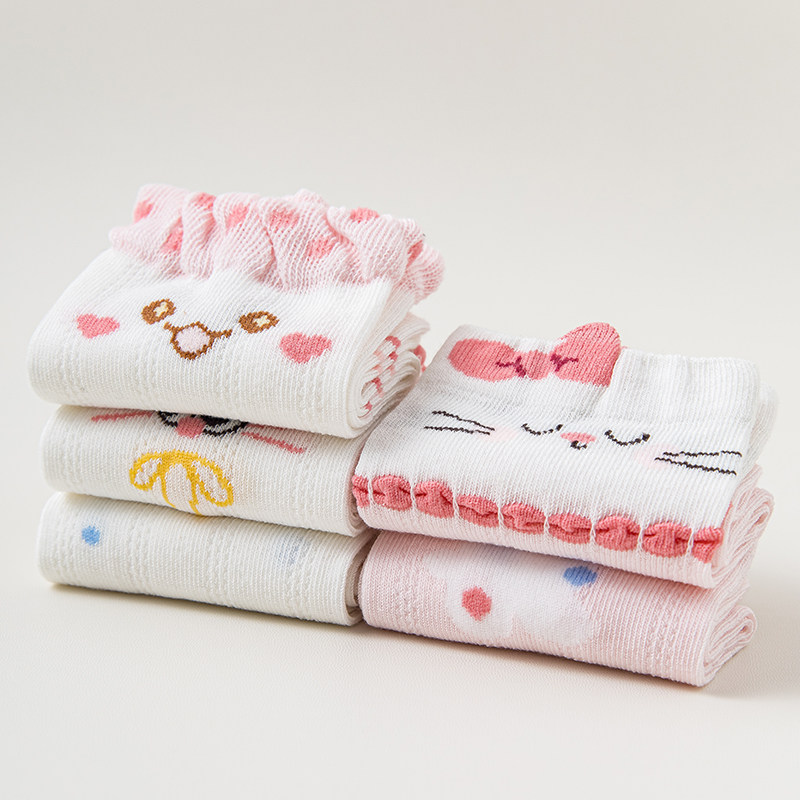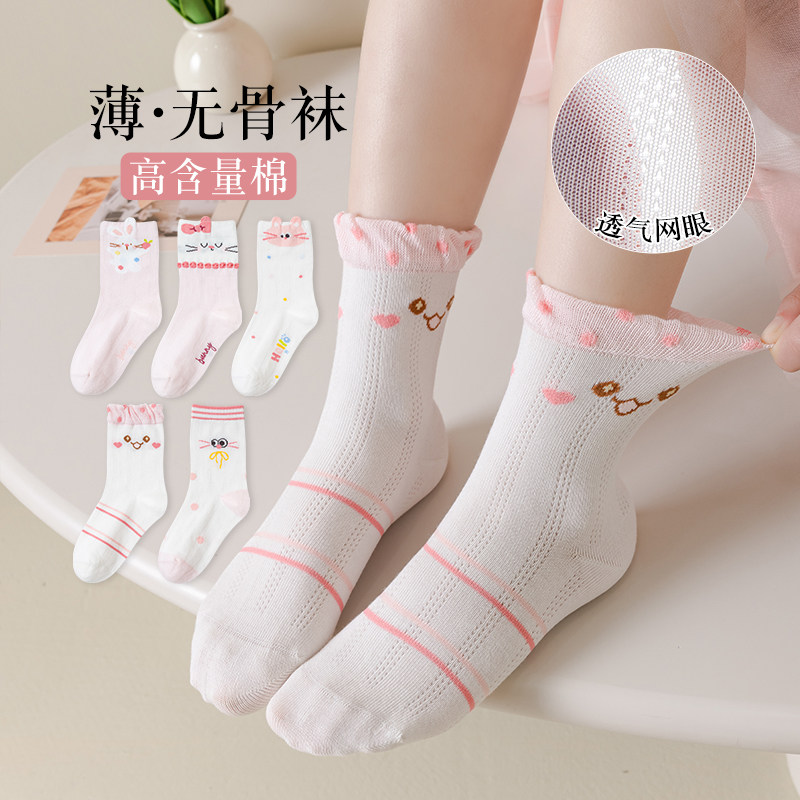 a类100%棉女童袜子春夏季薄款纯棉抗起球儿童网眼袜卡通版学生袜