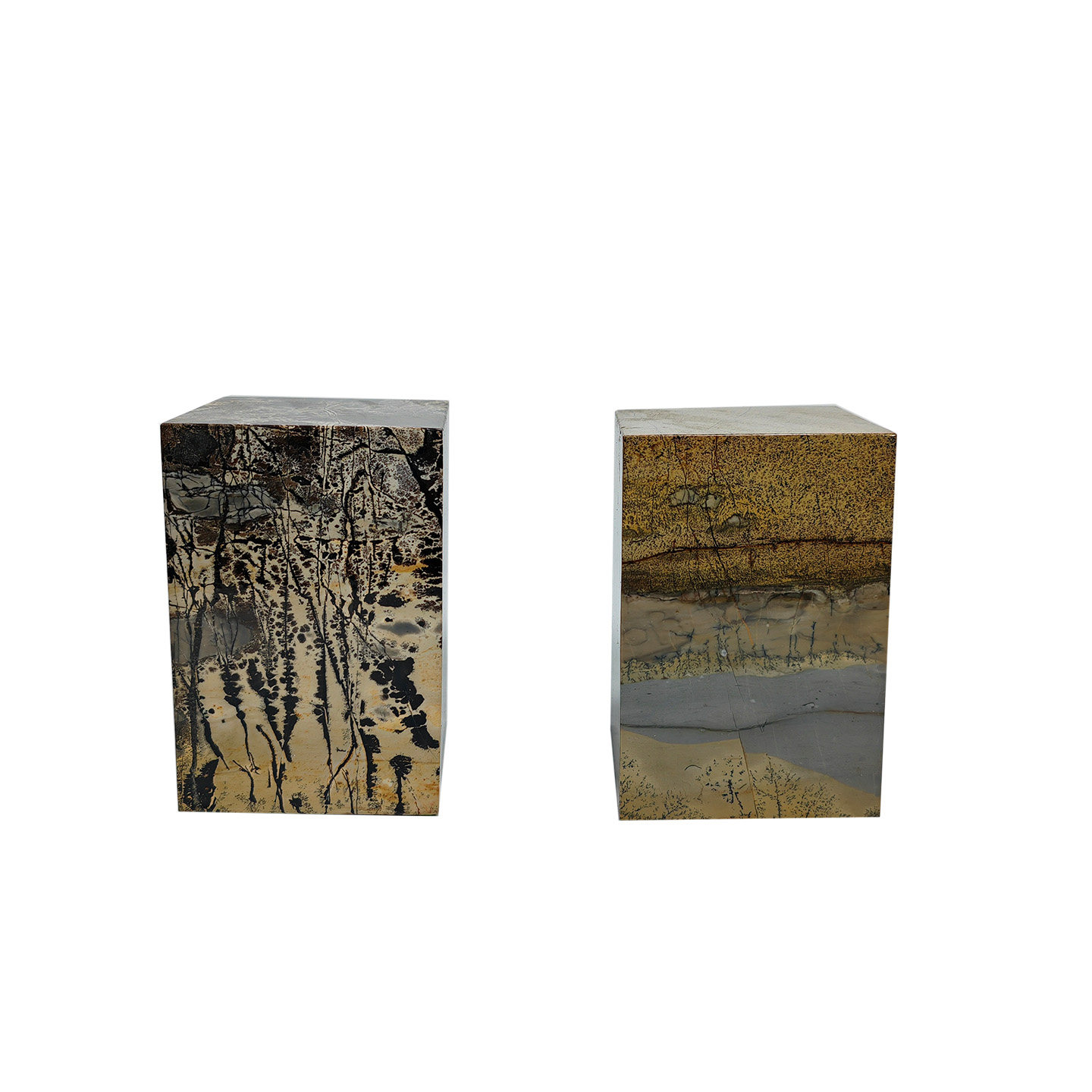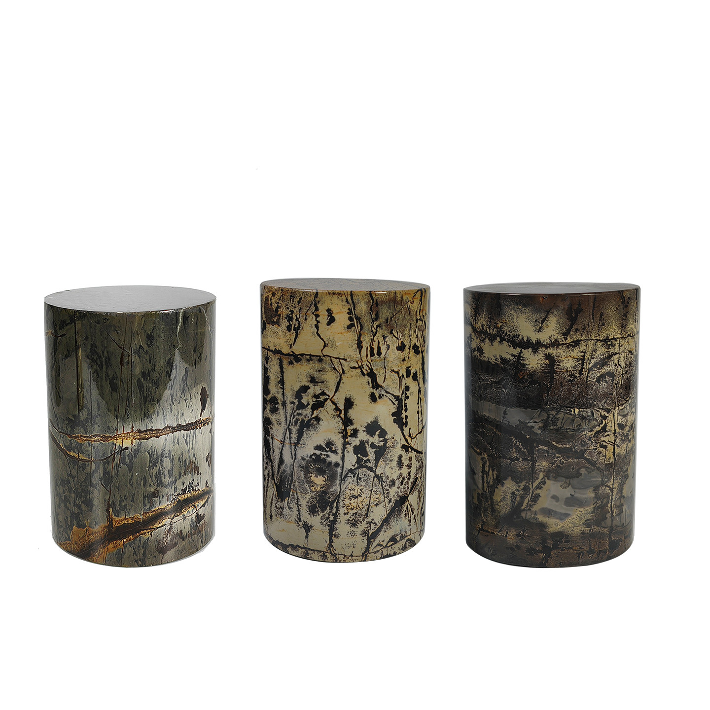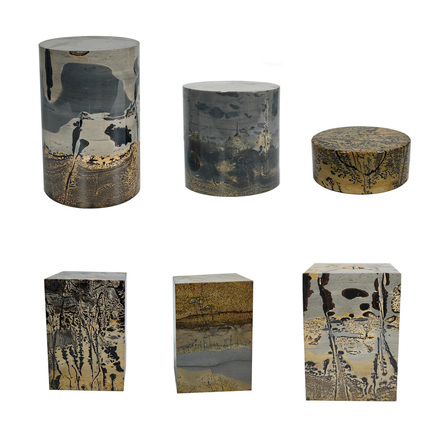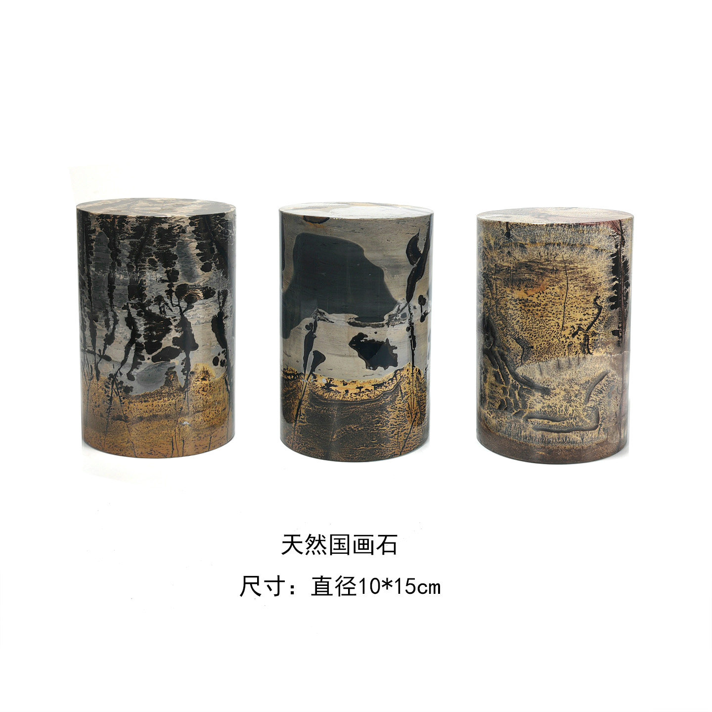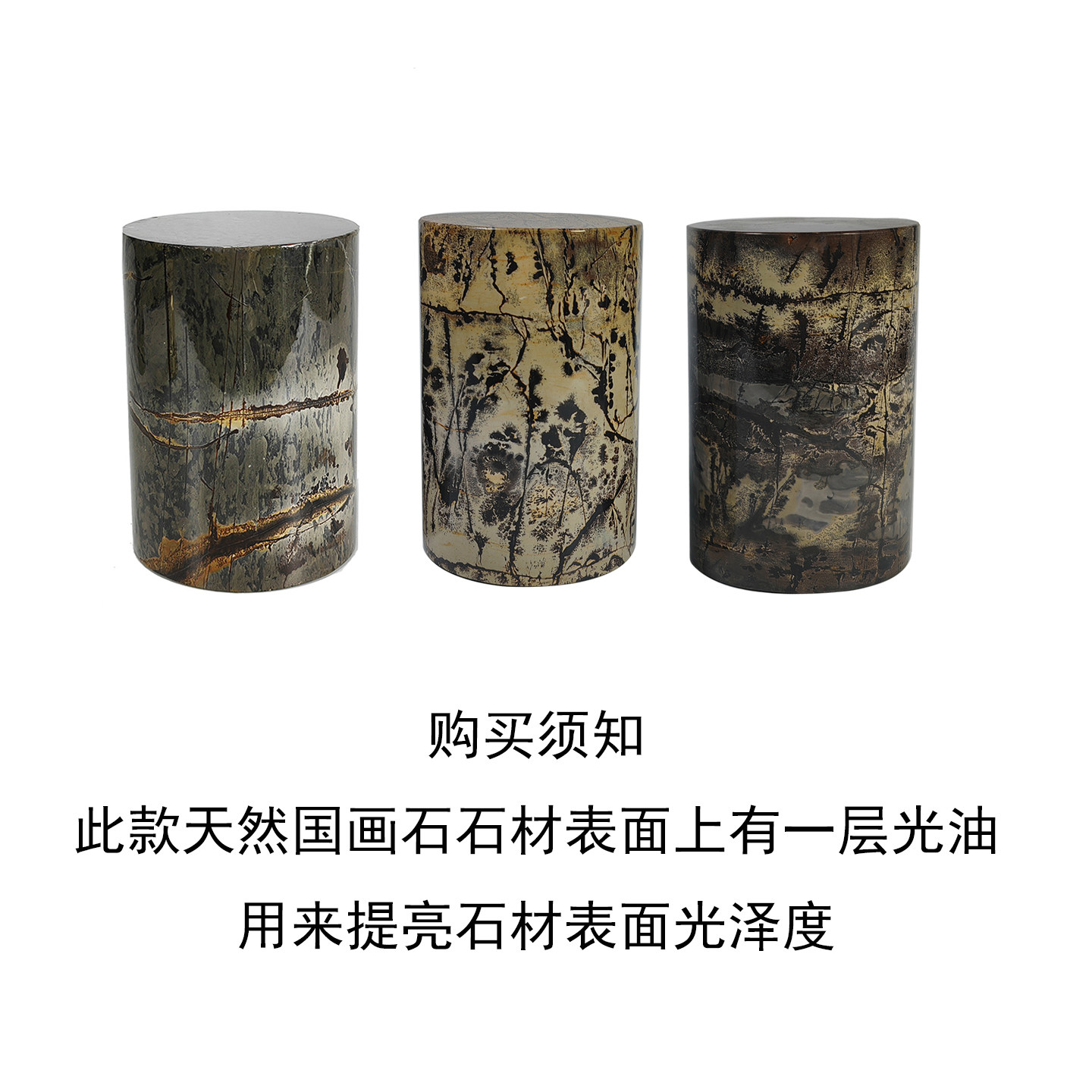 天然实心国画石草花石圆柱方柱饰品底座小石墩天然石摆件