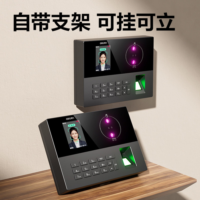 得力员工打卡考勤机AH23C人脸指纹识别考勤机掌静脉识别考勤打卡机面部手掌识别公司企业员工上下班打卡器