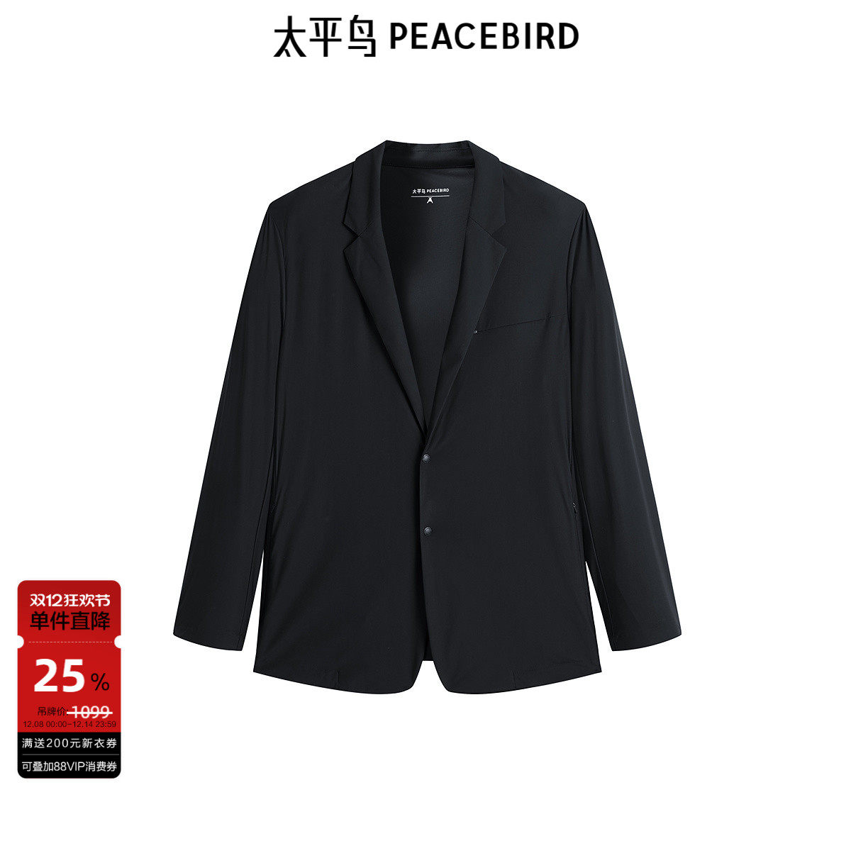 太平鸟男装 夹克修身行政西装黑色商务休闲单排扣西服秋季外套潮