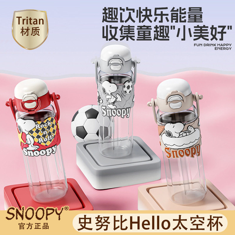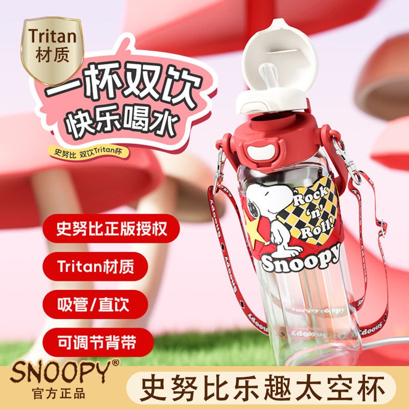 史努比儿童太空杯女生高颜值双饮杯tritan吸管杯男孩学生上学水杯