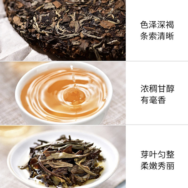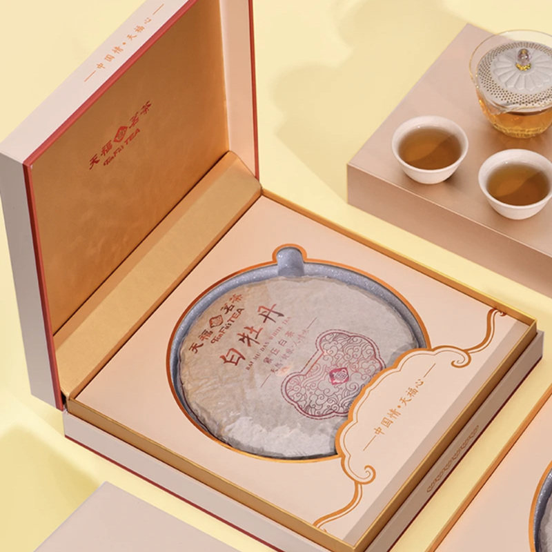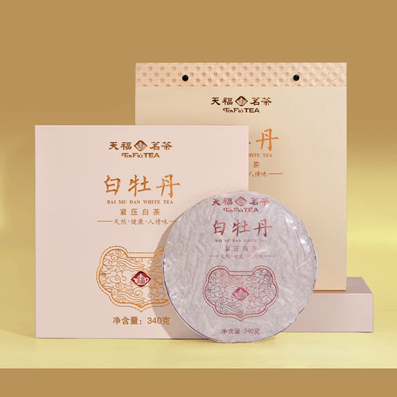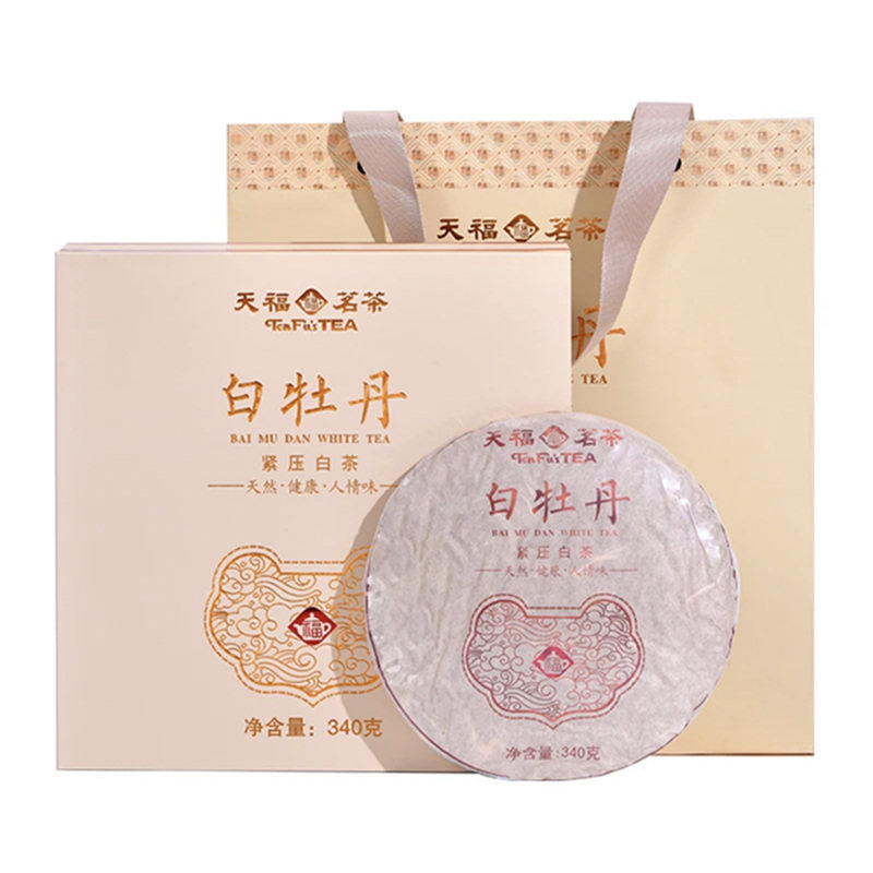 天福茗茶 白牡丹紧压白茶2017年原料福鼎老白茶340g茶饼礼盒装