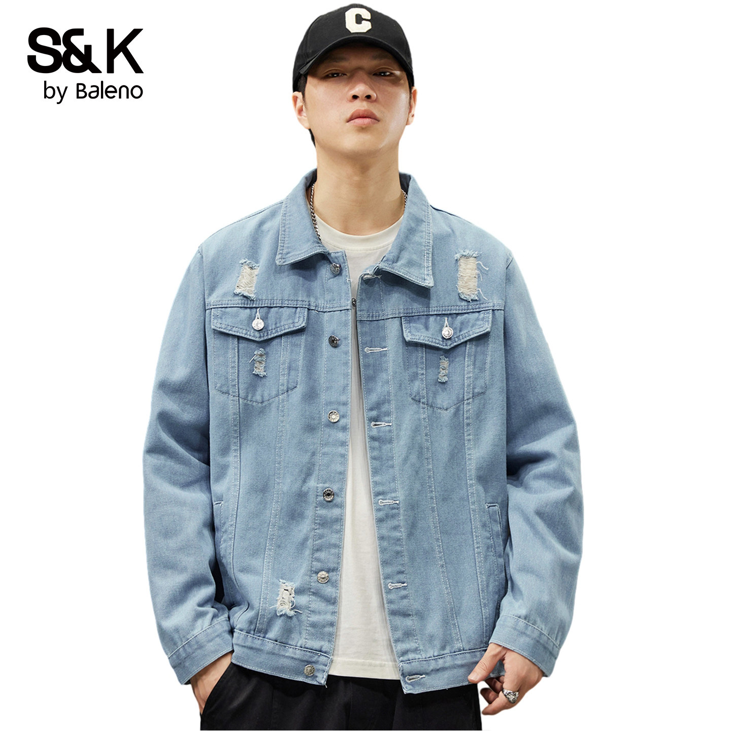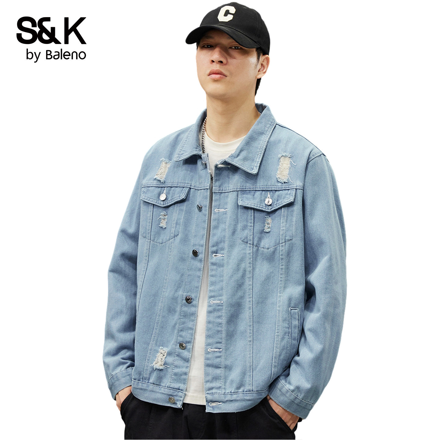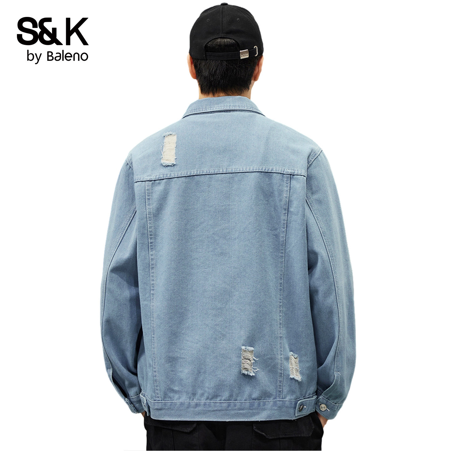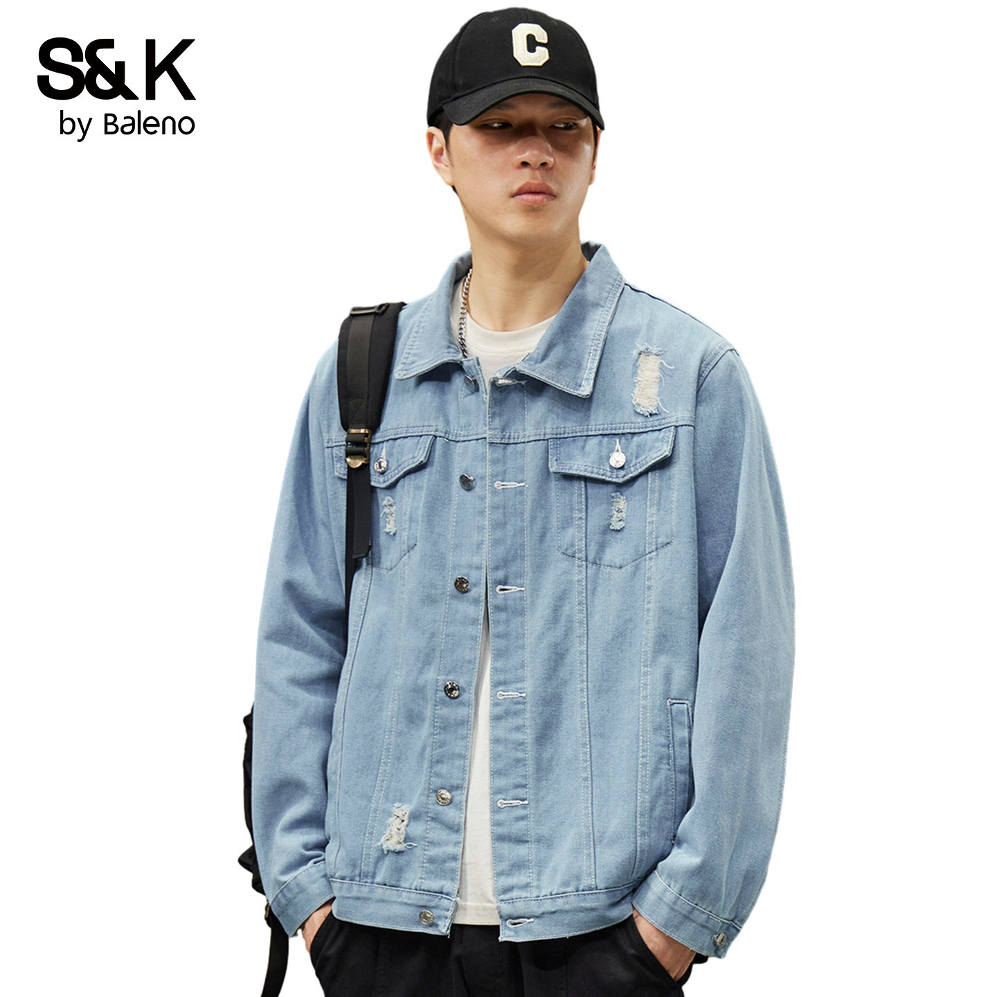 班尼路SK秋季新款休闲男士破洞牛仔夹克外套春秋男装宽松上衣服MS