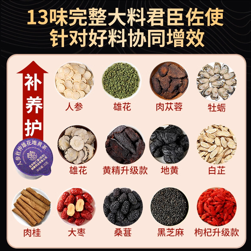 北京同仁堂八宝茶人参肉苁蓉枸杞地黄茶男士强肾补精熬夜滋补养生