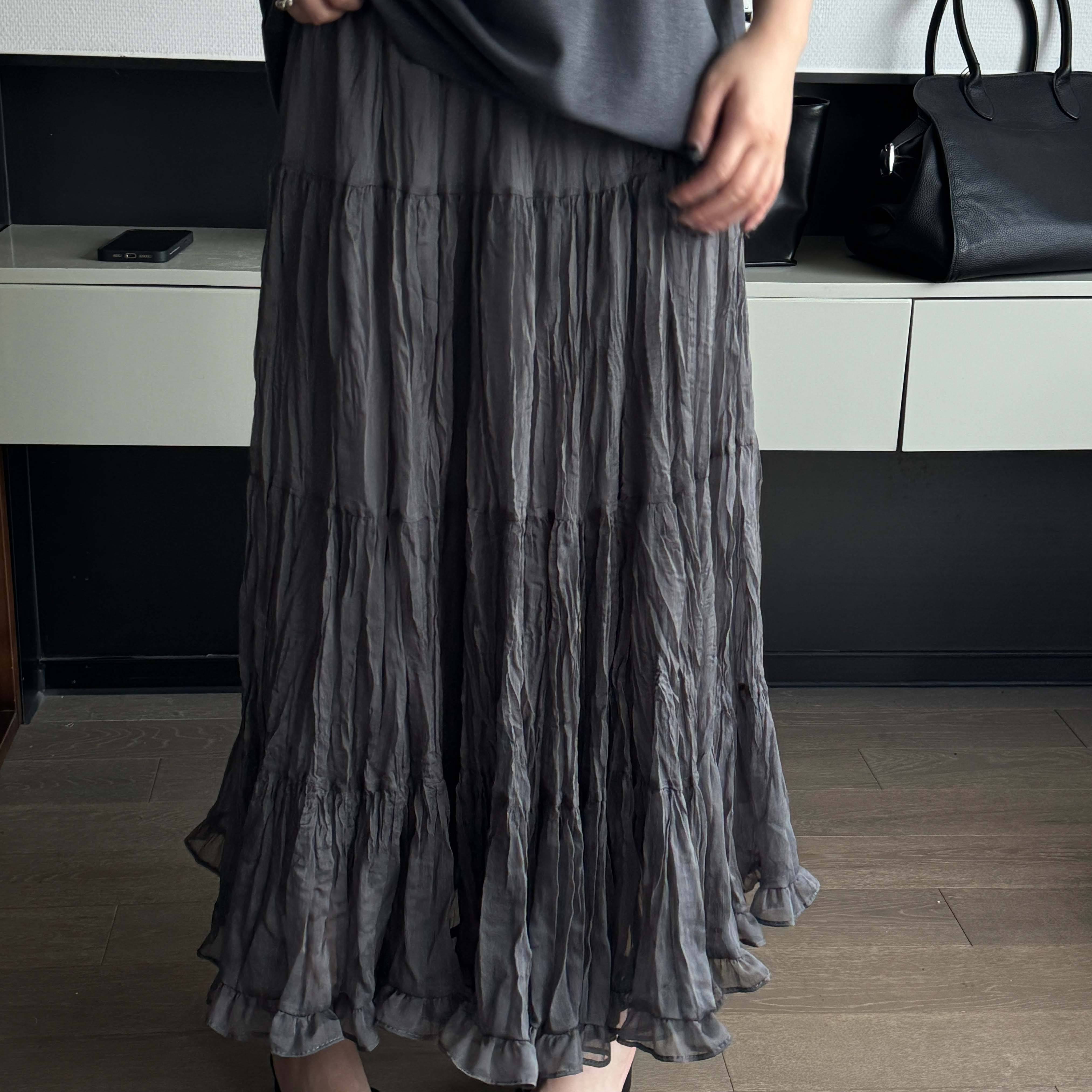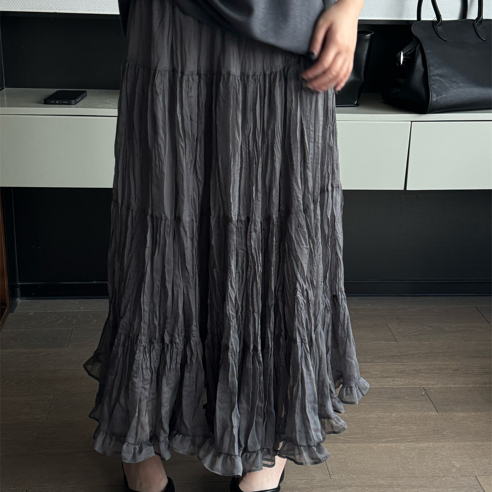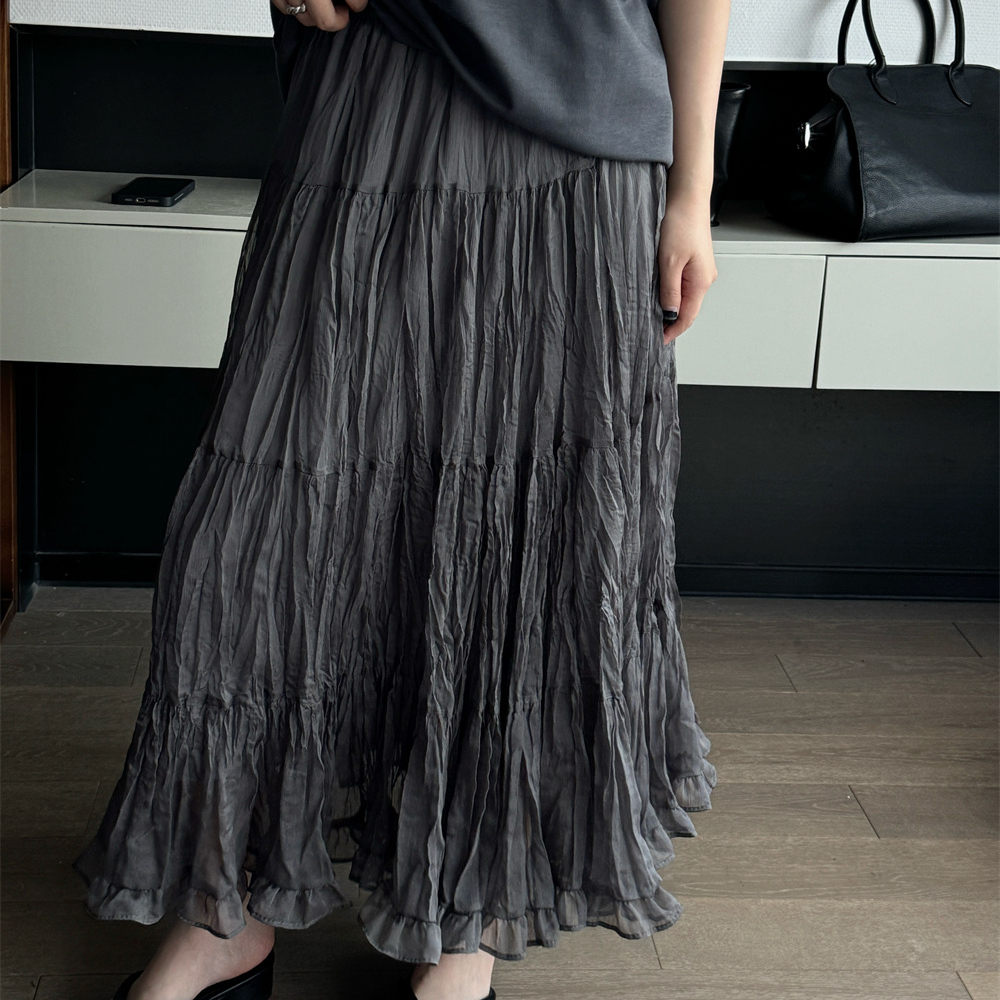 欧洲站2025夏装新款欧货松紧腰褶皱半身裙女士春秋宽松显瘦长裙子