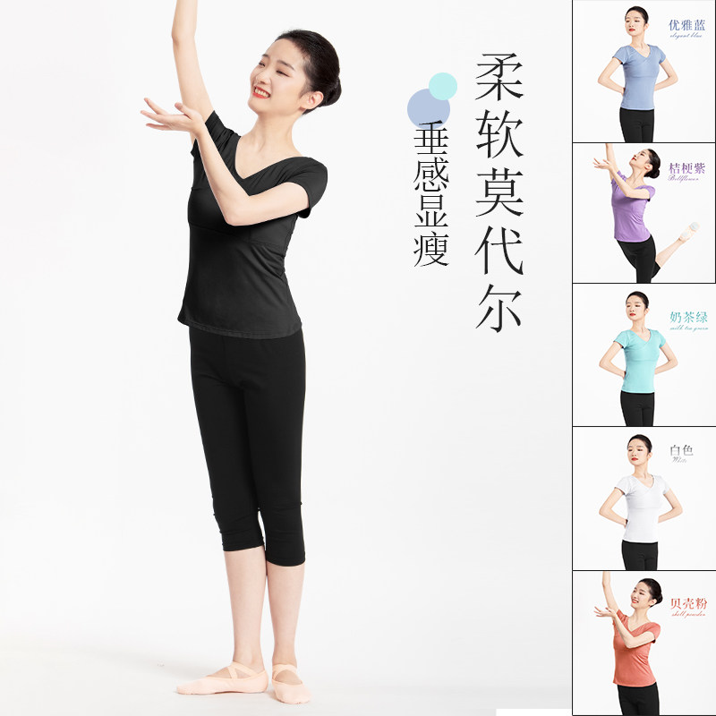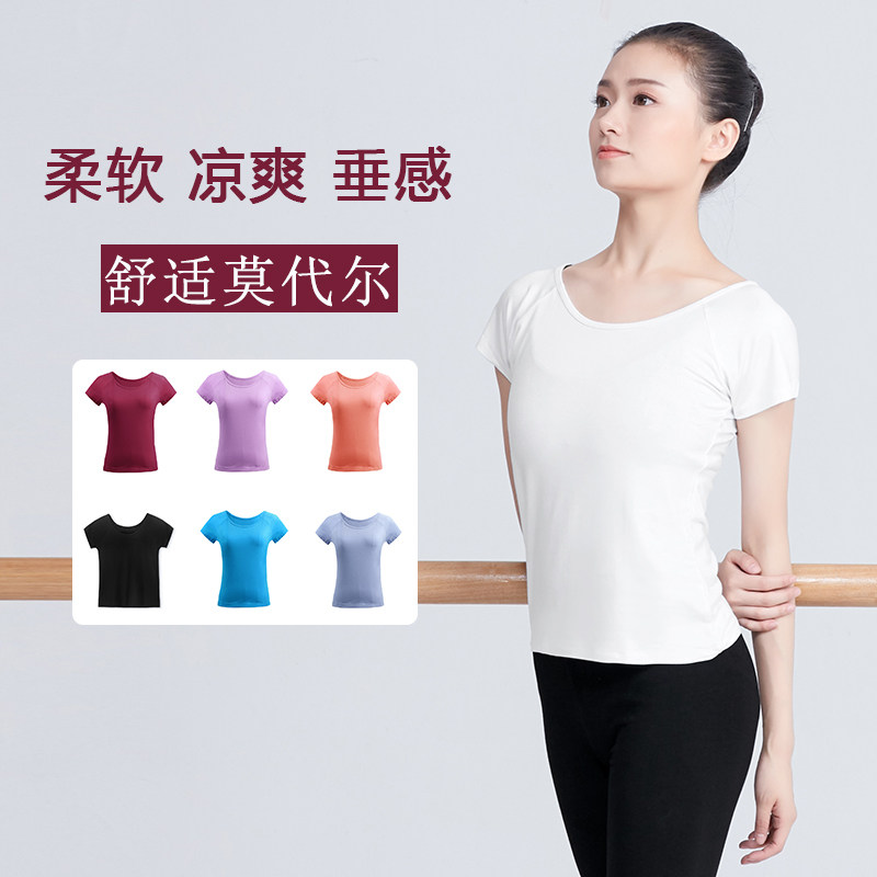 莫代尔舞蹈服上衣女夏显瘦短袖瑜伽服芭蕾练功服训练紧身黑色T恤