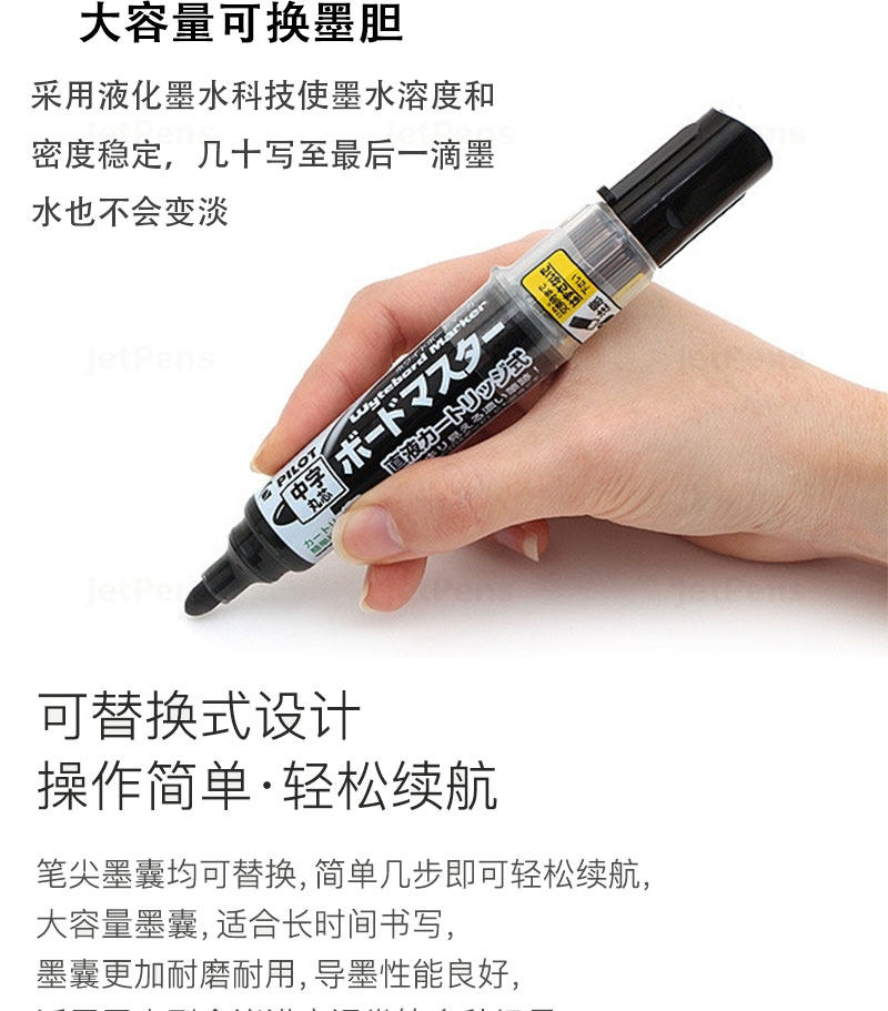 日本PILOT百乐白板笔可擦写V直液式大容量墨液教育培训办公可换芯