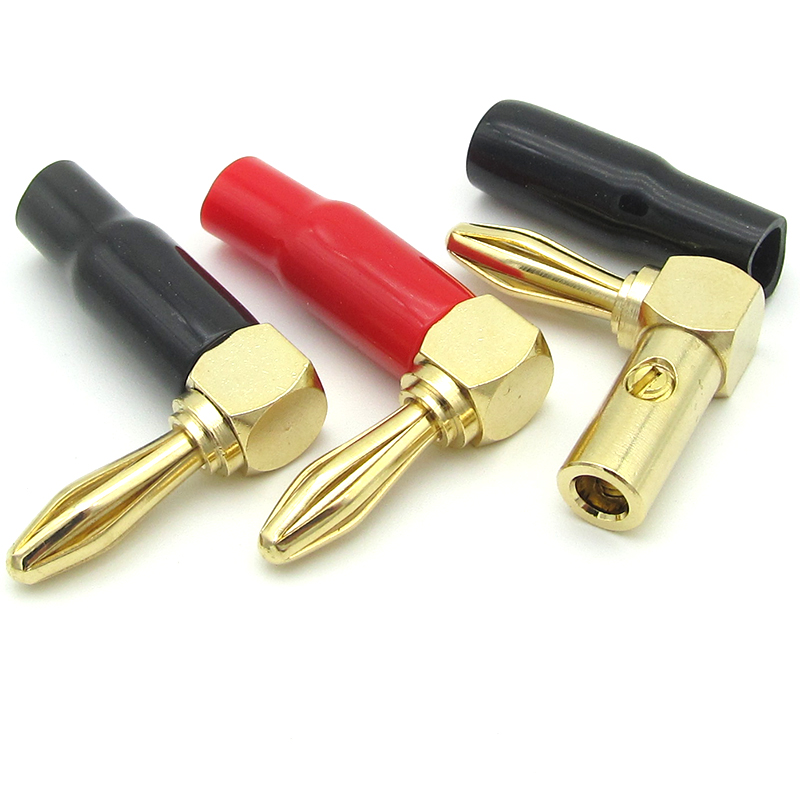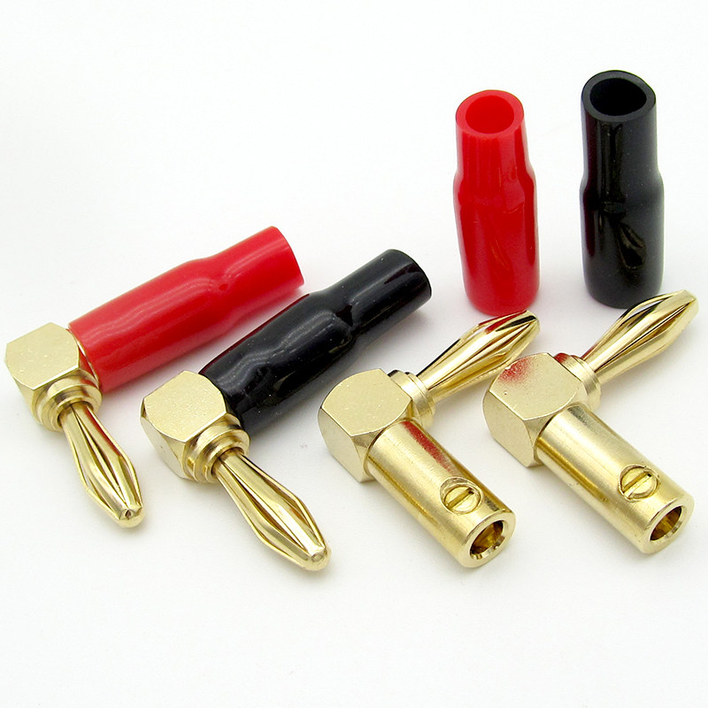 纯铜镀金4MM香蕉插头免焊功放接线柱喇叭音响音箱线接头弯头 四个