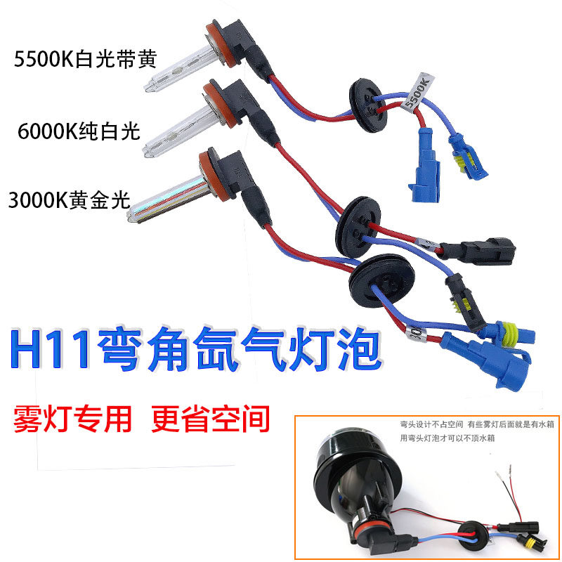 弯角氙气灯泡H11汽车摩托车改装雾灯透镜专用超亮35W无阴影无暗区