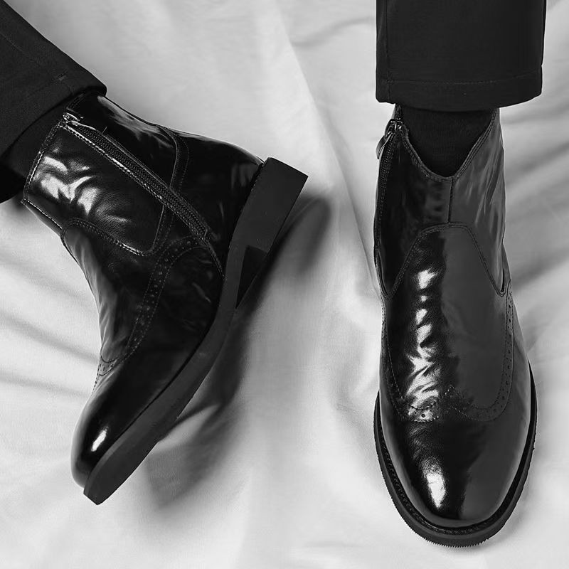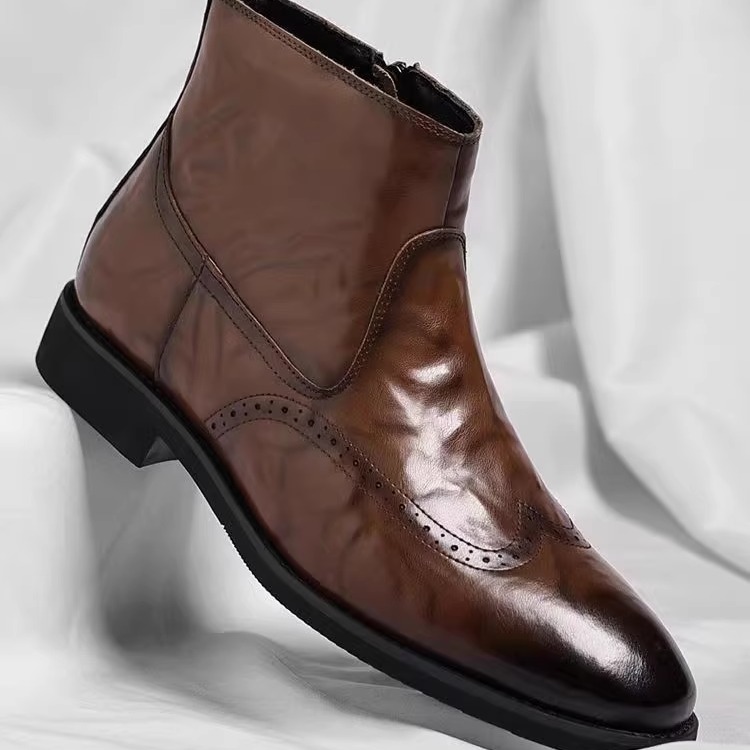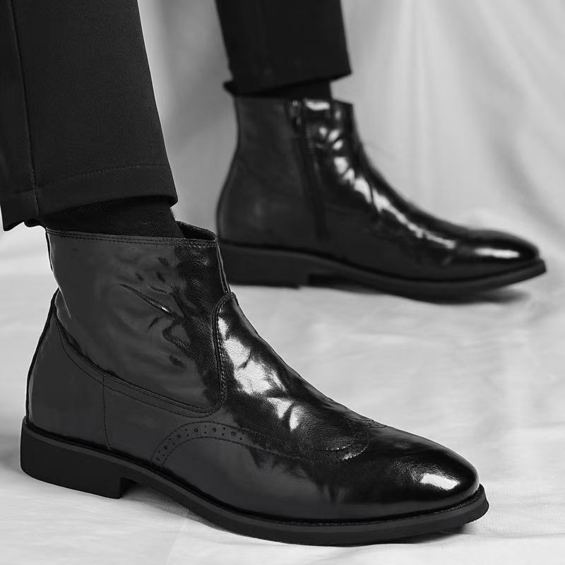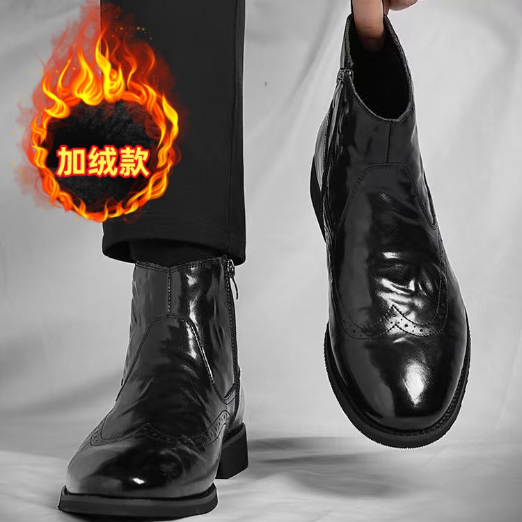 尖头切尔西靴男高帮真皮厚底春秋新款皮鞋男英伦风冬款加绒马丁靴