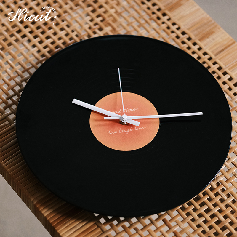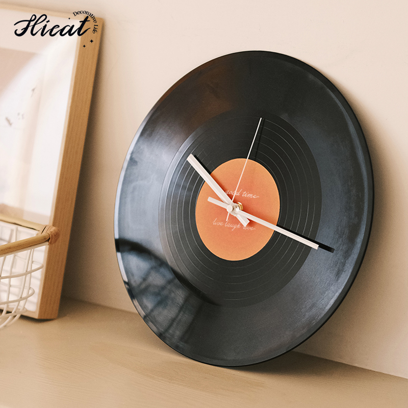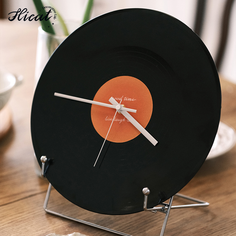 Hicat落日黑胶唱片钟摆件复古台座钟DIY挂钟咖啡厅酒吧客厅墙时钟