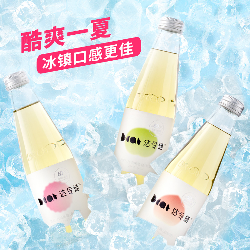 达令猫果酒气泡苹果酒4度男女士低度微醺白桃荔枝聚会气泡甜酒