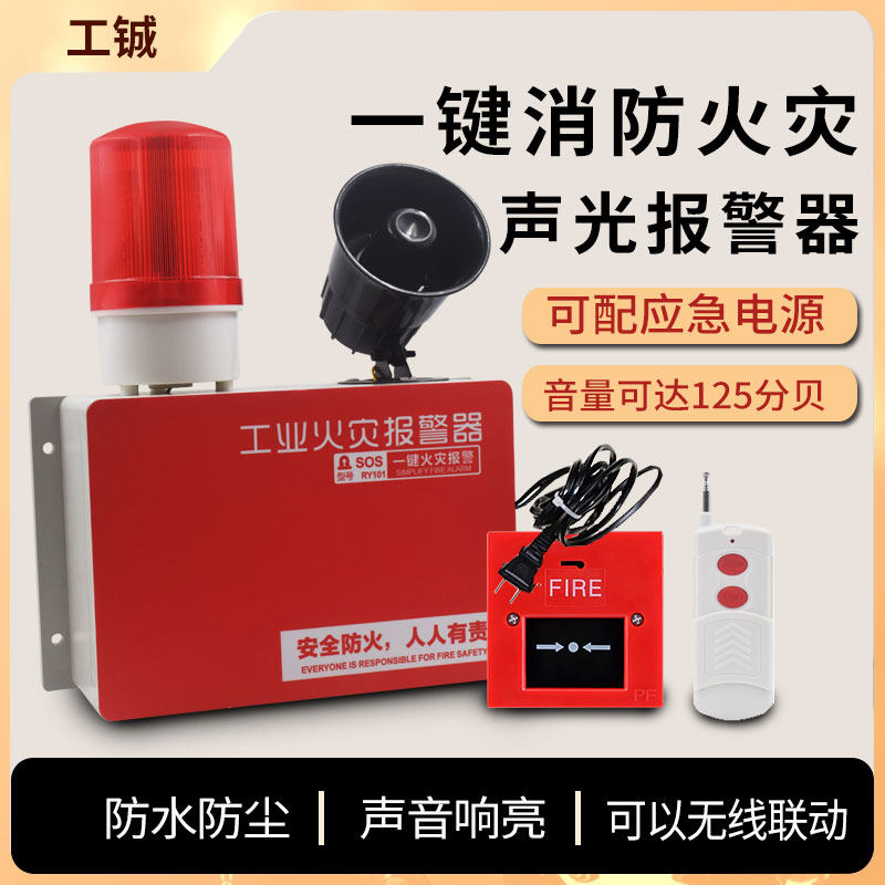 一键无线联动遥控消防声光报警器220V工业火灾验厂房应急手动警铃