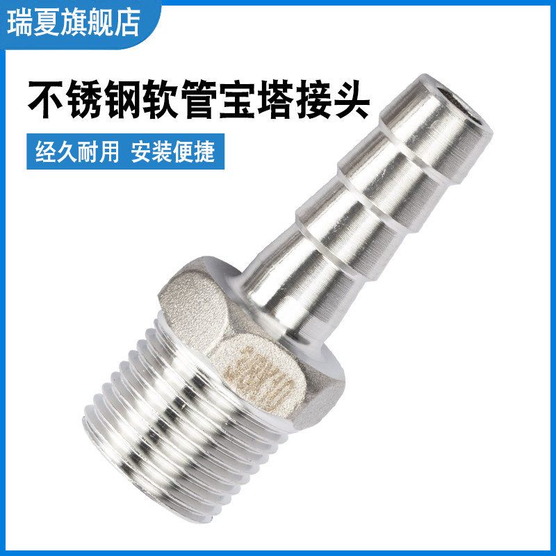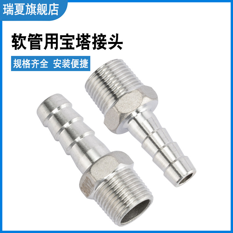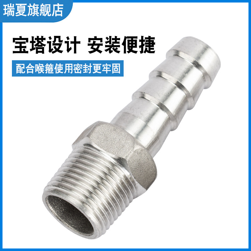 304不锈钢六角外丝宝塔接头 4分软管水管皮管倒刺竹节接头1/4 1/2