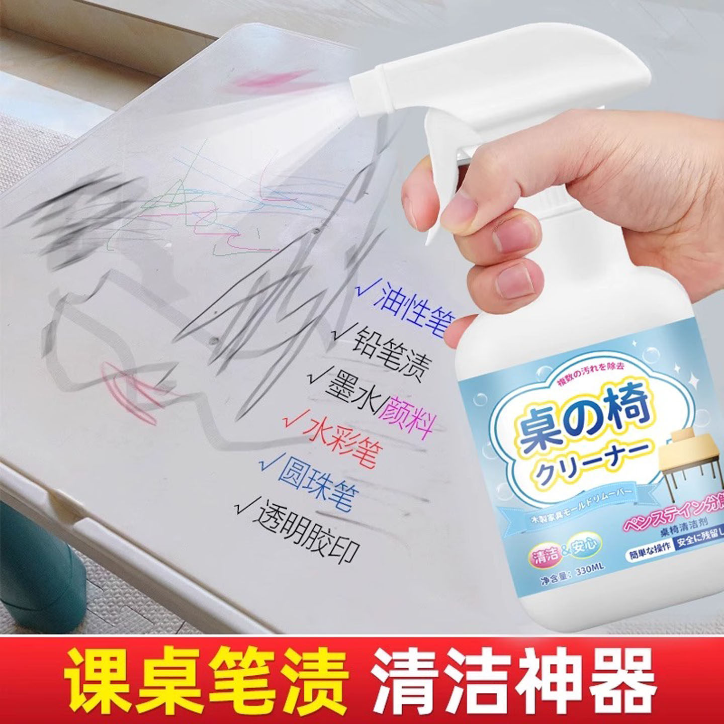 桌椅清洁剂塑料课桌椅书桌办公木家具专用擦桌子笔渍清洗强力去污
