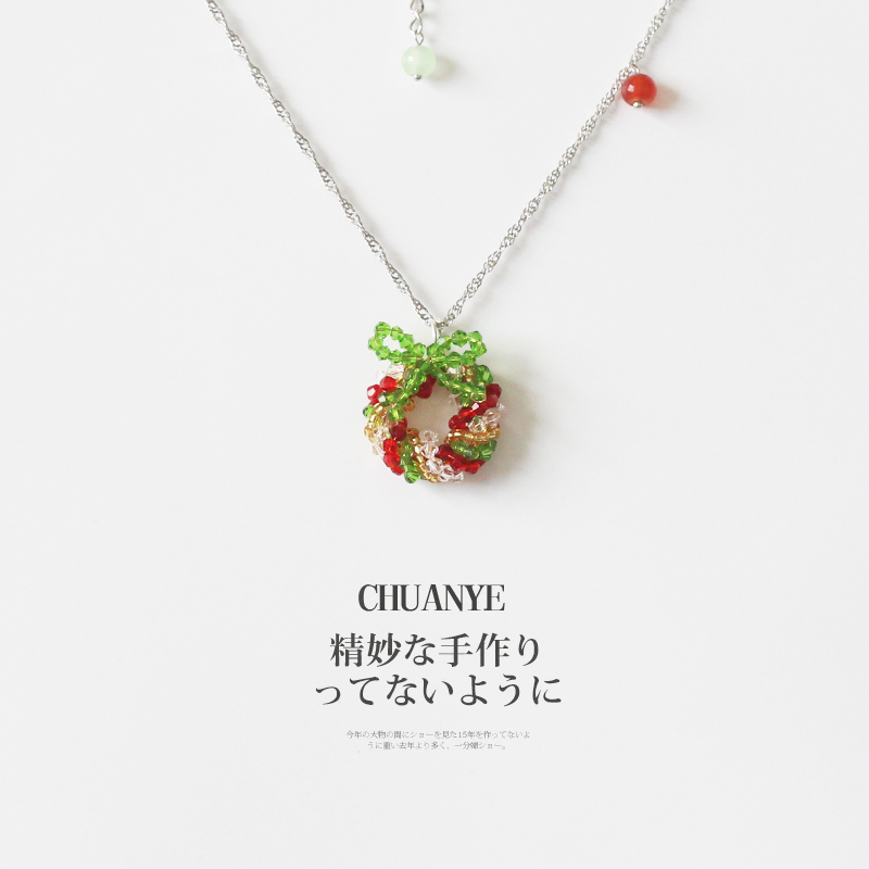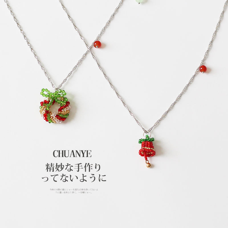 川野圣诞铃铛彩色圈锁骨链女新款时尚高级感吊坠挂绳手工饰品首饰