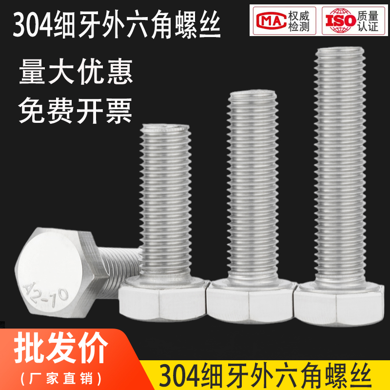 304不锈钢细牙外六角螺丝螺栓M6M8M10M12M14M16M18M20*1/1.25/1.5