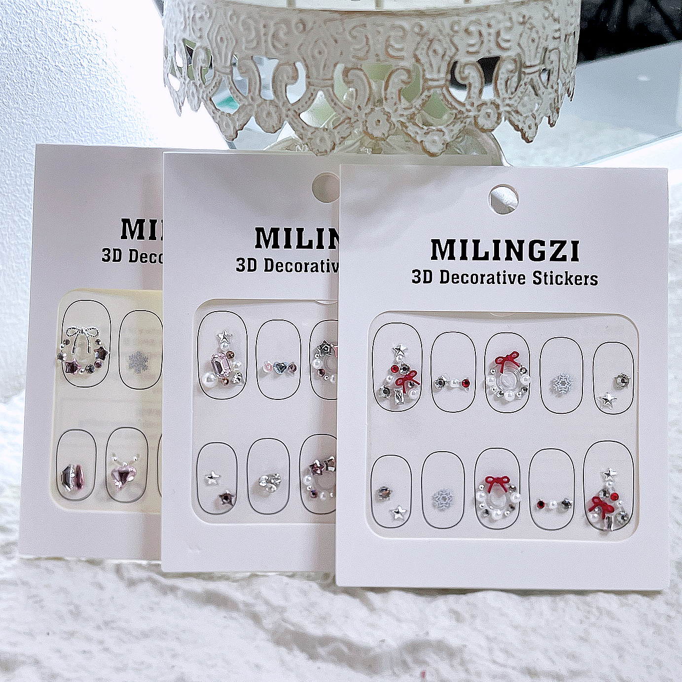 网红圣诞款美甲饰品装饰水钻贴纸材料包成品小配件指甲异形混钻