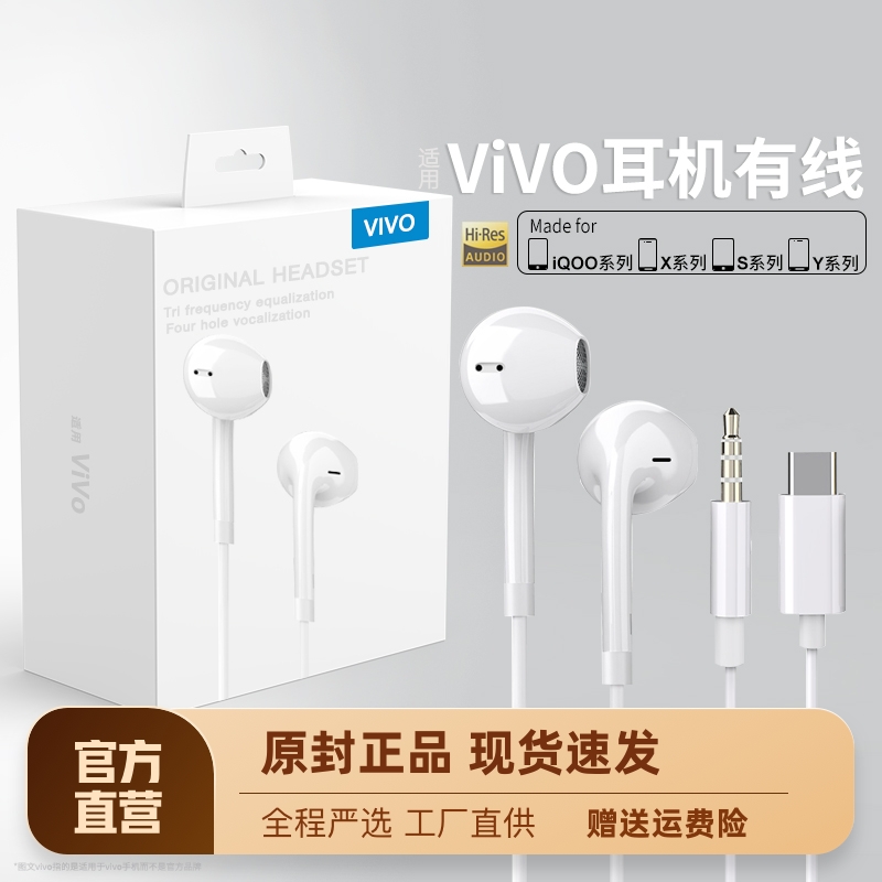 耳机有线适用vivo手机iqoo原装X90新款高音质s16原装s15降噪typec