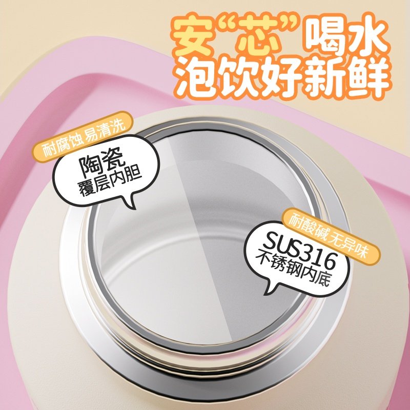 ins风陶瓷内胆保温杯女生高颜值咖啡杯大容量可爱儿童牛奶瓶水杯