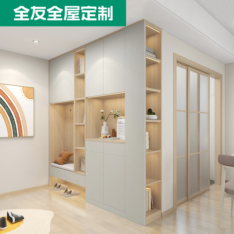 全友全屋定制入户玄关鞋柜定制侧面开放格储物一体靠墙拐角式鞋柜