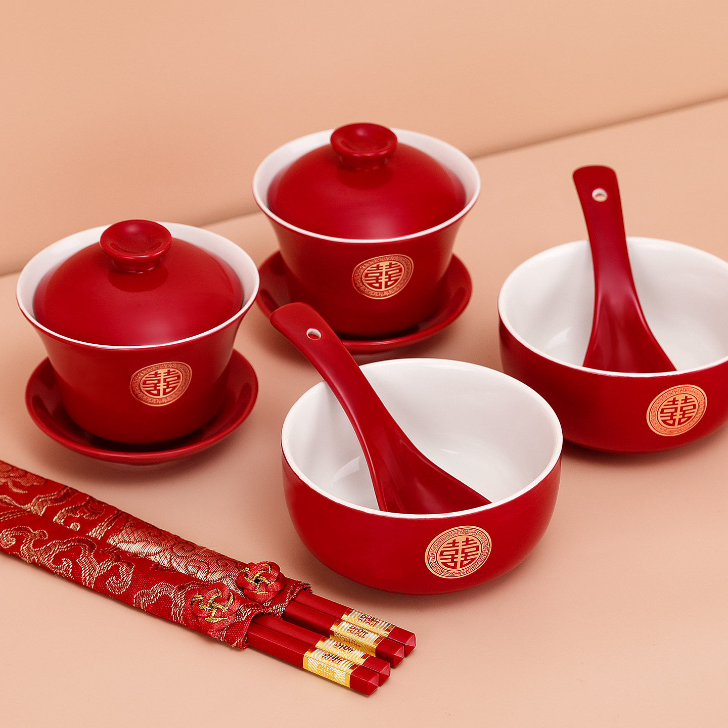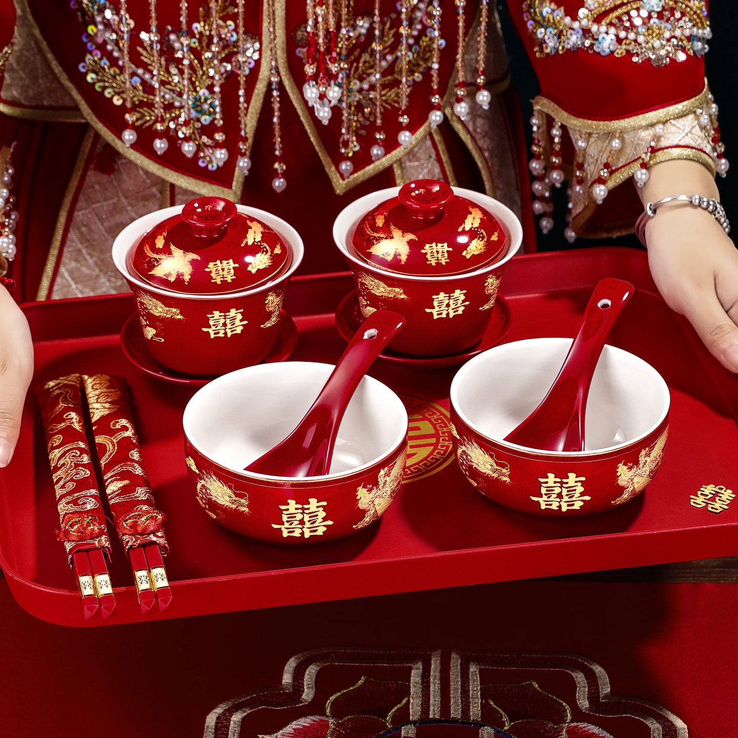结婚敬茶杯一对送新人新婚礼物创意礼品套装婚礼喜碗婚庆用品大全