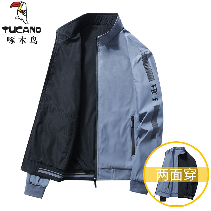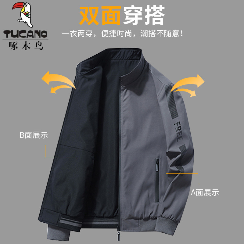 啄木鸟春秋款双面穿中青年休闲立领夹克男宽松运动外套爸爸装上衣