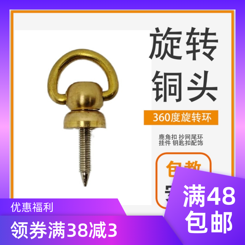 手工diy鹿麂牙钥匙扣鱼杆抄网安装黄铜万向旋转环其他DIY饰品配件