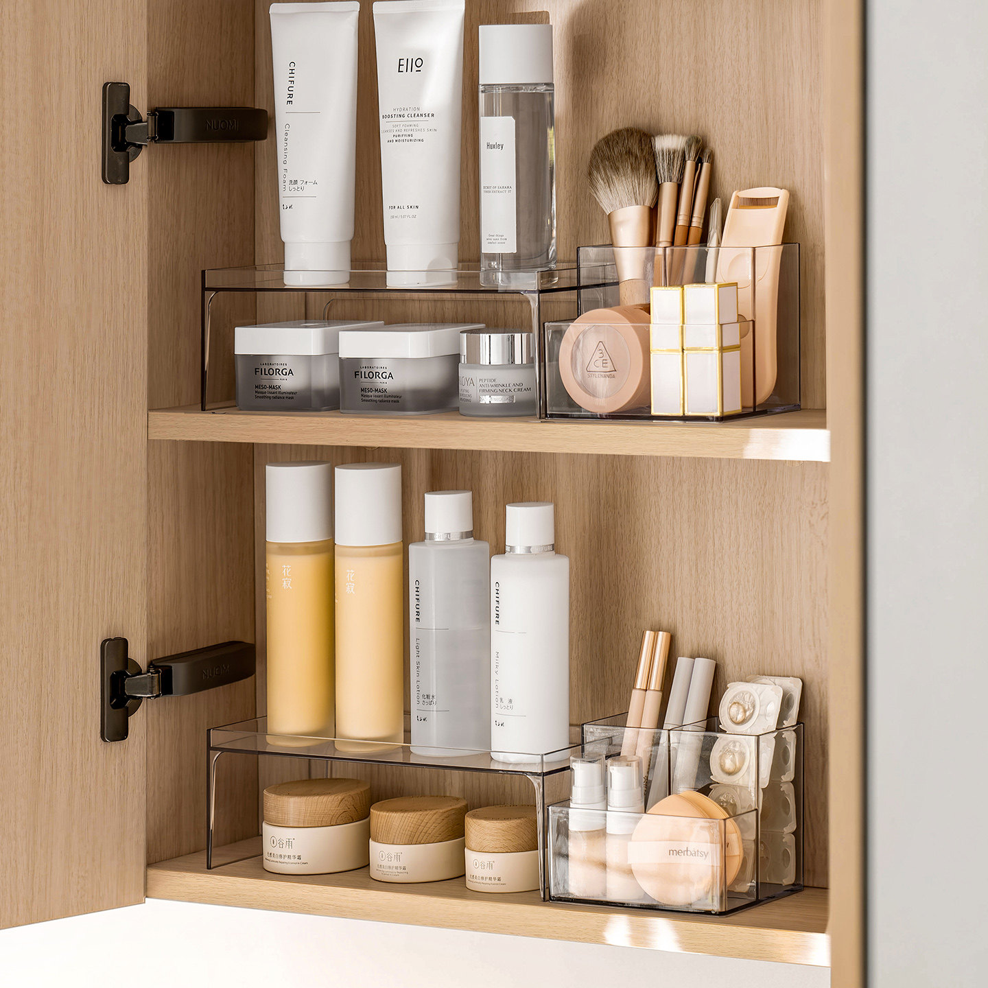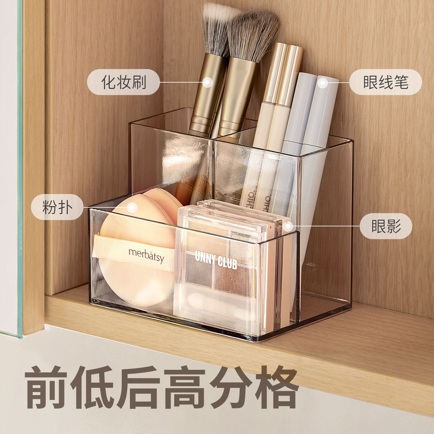 懒角落镜柜收纳盒口红化妆护肤品粉扑置物架子透明分格桌面整理盒