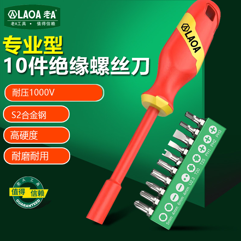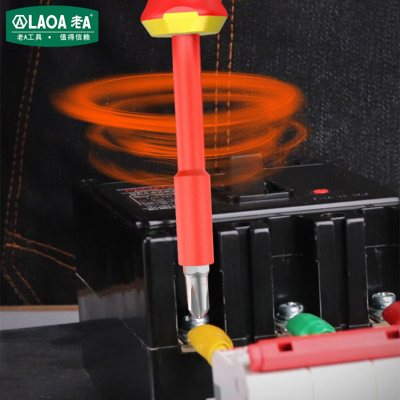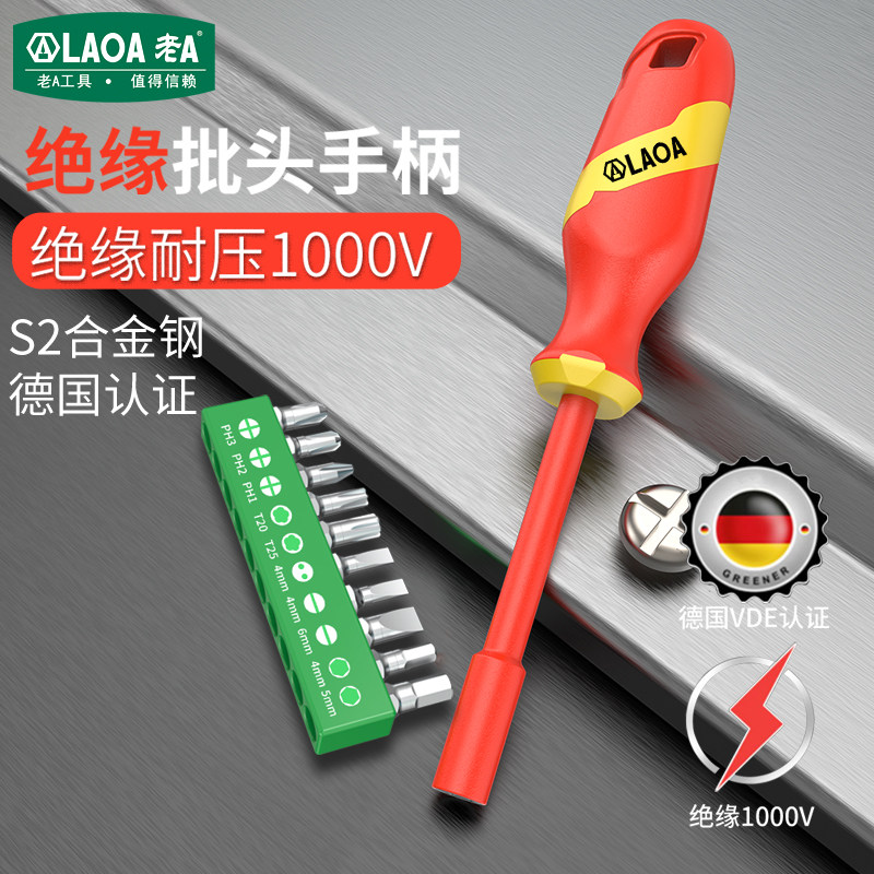 老A 双色绝缘注塑螺丝批手柄多功能六角套筒扳手起子电工专用耐压
