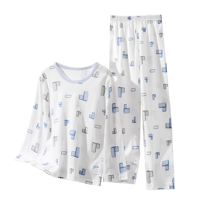 儿童纯棉睡衣薄款夏季男童女童家居服套装长袖宝宝小孩全棉空调服