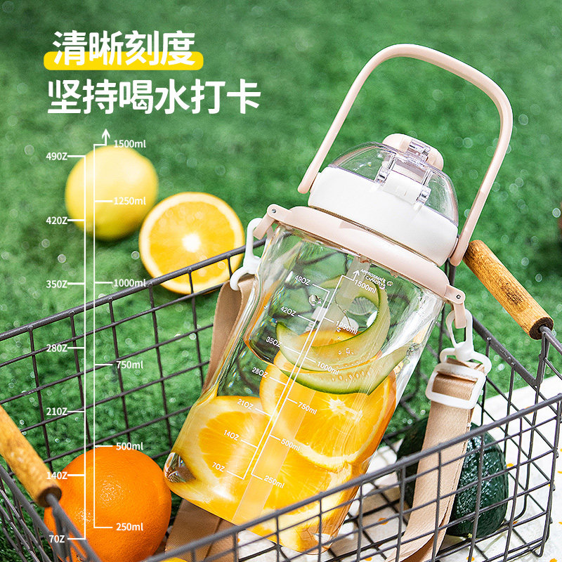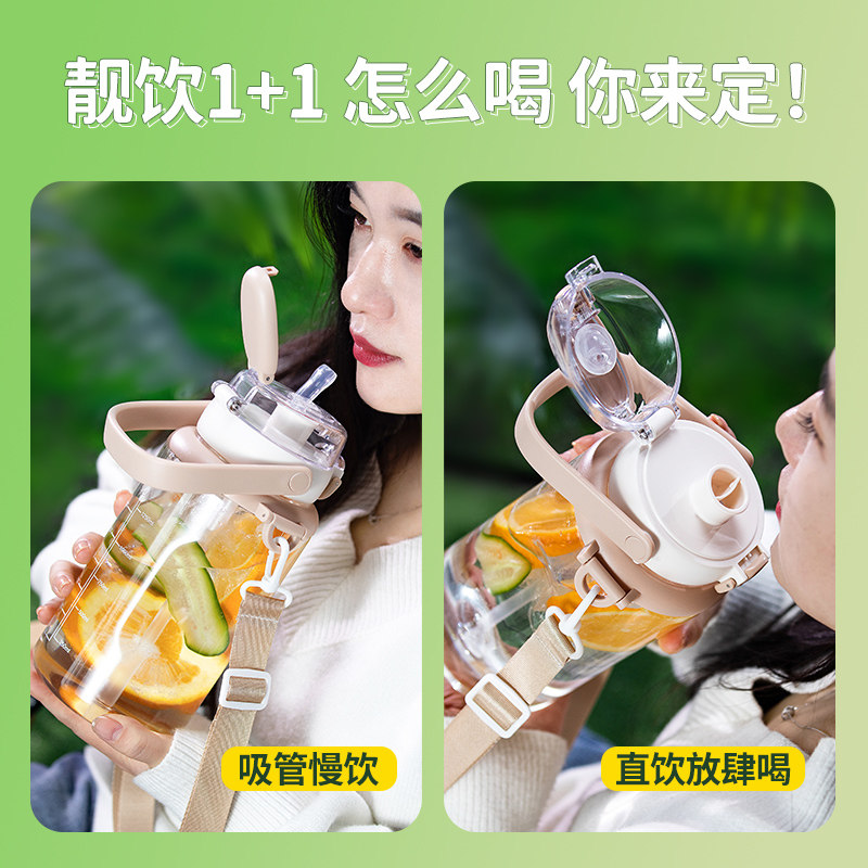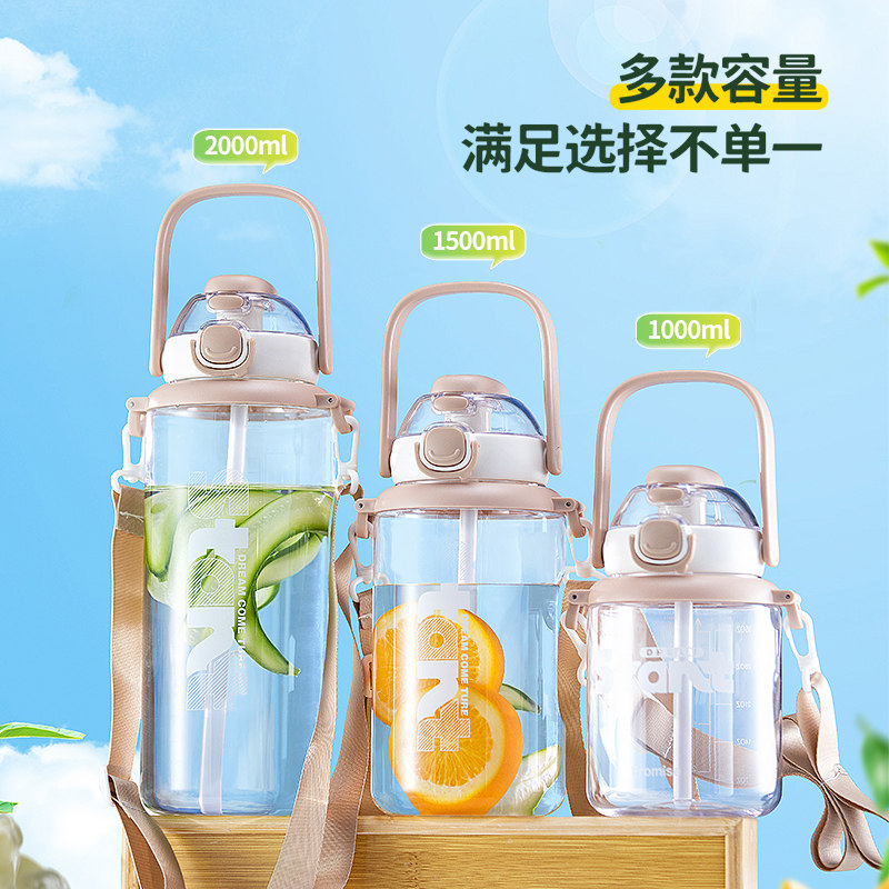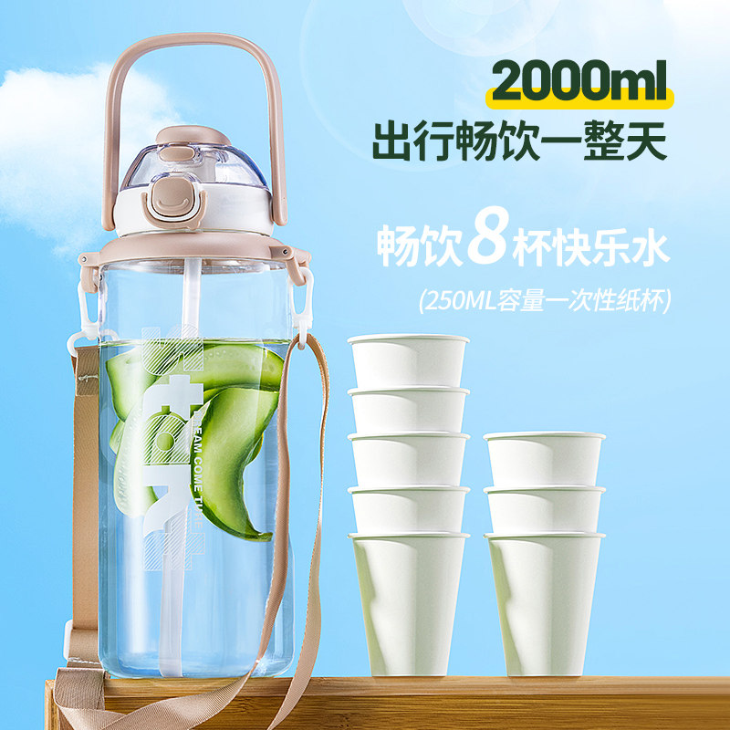 水杯大容量女学生2000ml塑料太空杯耐高温夏季运动水壶带吸管杯子