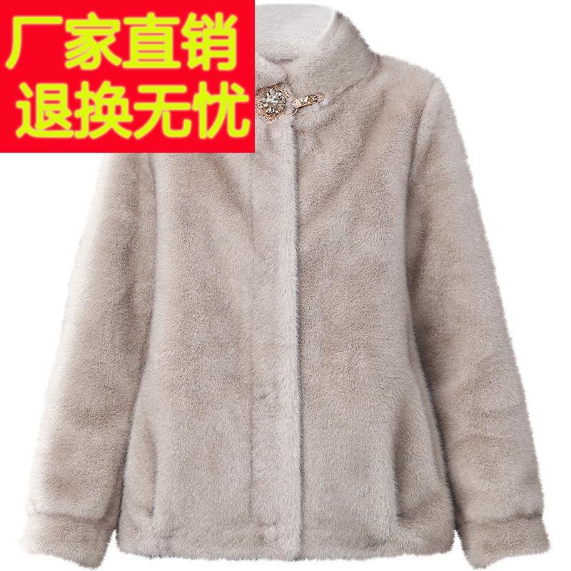 小个子妈妈秋冬装皮草外套时尚中老年女士新款水貂绒皮毛一体大衣